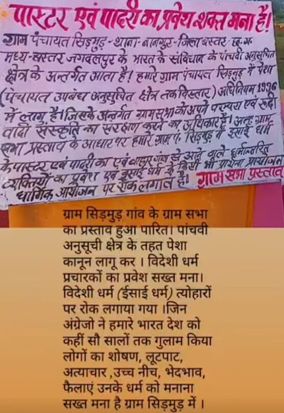 ग्रामसभा का फैसला, गांव में पादरियों की एंट्री बैन