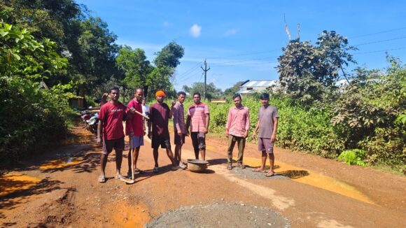 बकावंड। प्रधानमंत्री ग्राम सड़क योजना के तहत निर्मित बकावंड ब्लॉक की मालगांव मेन रोड लंबे समय से बदहाल थी। जगह-जगह बने गड्ढों के कारण राहगीरों को भारी परेशानी हो रही थी, किंतु संबंधित अधिकारी और विभाग चुप्पी साधे बैठे रहे। अंततः पूर्व जनपद सदस्य भोलानाथ नाग के नेतृत्व में ग्रामीणों और युवाओं ने आगे बढ़कर सड़क के गड्ढों को स्वयं भरने का कार्य किया। यह कार्य पूर्णतः सामूहिक श्रमदान के माध्यम से किया गया।