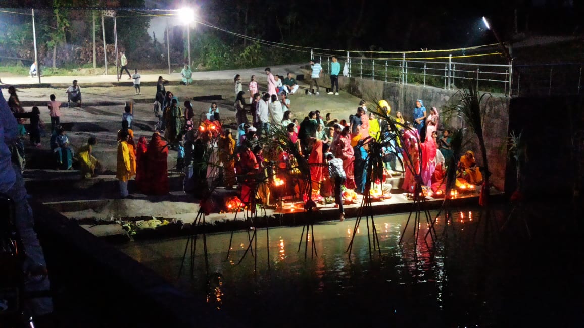 वहीं चुल्हट नदी के सती घाट ढोढी घाट तथा आमा घाट में व्रती महिलाओं के परिजनों तथा श्रद्धालुओं की अपार भीड़ लगी रही। बीते सालों के अपेक्षा इस साल उपवास रखने वाली महिलाओं की संख्या में इजाफा हुआ है। दिन ब दिन छठ पूजा के प्रति लोगों का आस्था बढ़ता जा रहा है। बस स्टैंड तथा दैनिक गुदड़ी बाजार में लगे छठ पूजा सामग्री दुकानों में खरीदारों की भीड़ देखी गई। दौरी सुप गन्ना मौसमी फल जरूरियात के सभी सामानों की बिक्री जोरों पर रही। छठ घाटों में छठी मईया के भक्ति गीत संगीत से सारा घाट सराबोर रहा। स्थानीय कलाकारों ने छठ घाट पर आयोजित सांस्कृतिक कार्यक्रम में बेहतर छठ गीतो की प्रस्तुति दी। आतिशबाजी डीजे साउण्ड सिस्टम पर बजते भक्ति गीत तथा ढ़ोल नगाड़े से नगर में ही नहीं अपितु जहां जहां छठ पूजा हो रहा था वहां कोलाहल मचा रहा।
