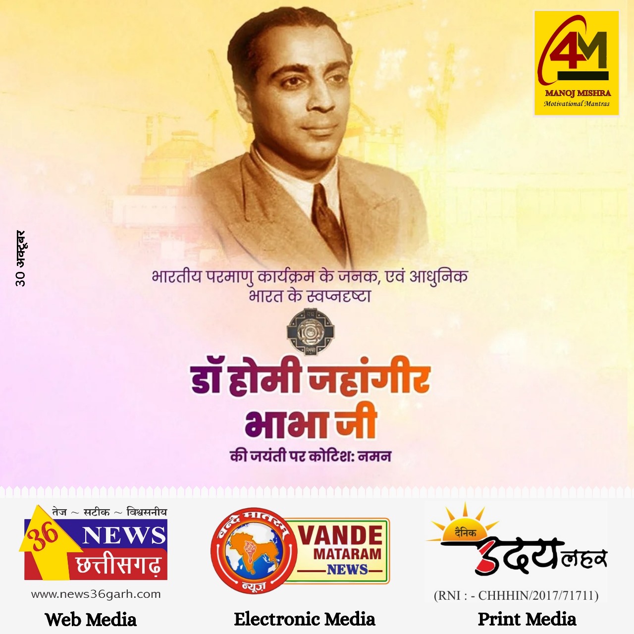 डॉ. भाभा की जयंती केवल एक स्मृति दिवस नहीं, बल्कि यह विज्ञान, नवाचार और आत्मनिर्भर भारत के संकल्प का प्रतीक है। उनके सपनों का भारत, वैज्ञानिक सोच से समृद्ध राष्ट्र की ओर निरंतर अग्रसर है।