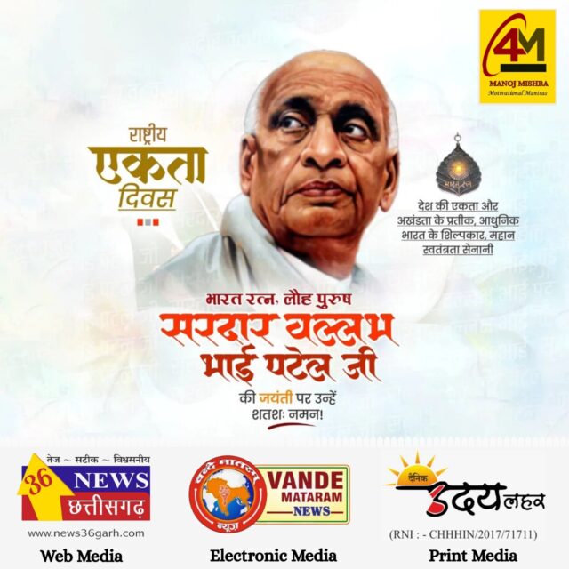 आज के दिन हमें संकल्प लेना चाहिए कि हम सरदार पटेल के दिखाए रास्ते पर चलते हुए देश को मजबूत, एकजुट और विकसित भारत बनाने में अपना योगदान देंगे।