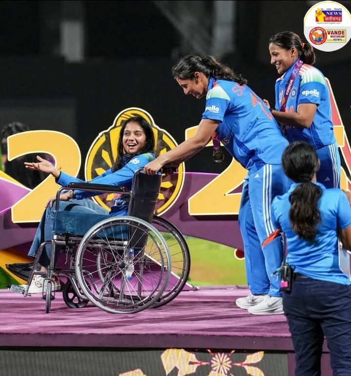 विश्व कप विजय समारोह में एक ऐसा दृश्य देखने को मिला जिसने करोड़ों भारतीयों का दिल छू लिया। भारतीय महिला क्रिकेट टीम की उपकप्तान स्मृति मंधाना ने अपनी घायल साथी प्रतिका रावल को व्हीलचेयर पर बैठाकर स्टेज तक पहुंचाया ताकि वह स्वयं अपना विजेता पदक प्राप्त कर सकें।