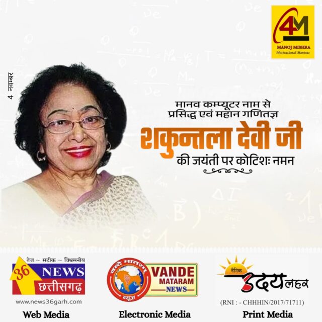 उनकी जयंती हमें याद दिलाती है कि प्रतिभा अगर जुनून से मिले, तो असंभव कुछ भी नहीं। शकुंतला देवी आज भी लाखों छात्रों और गणित प्रेमियों के लिए प्रेरणा हैं।