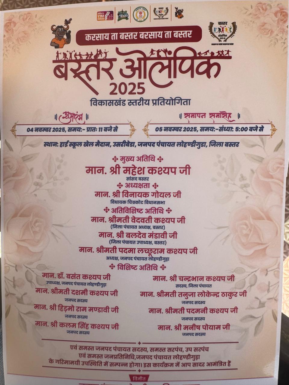जगदलपुर। बस्तर ओलंपिक में भारत की एकता और अखंडता की झलक दिखाई देती है। सभी वर्ग धर्म के खिलाड़ी छात्रों को अपने हुनर दिखाने का मौका मिलता है। सभी दलों के जनप्रतिनिधियों को इस महति आयोजन के सफल संचालन हेतु सम्मान पूर्वक आमंत्रित किया जाता है, मगर लोहंडीगुड़ा जनपद पंचायत के सीईओ इस आयोजन को सियासी जामा पहनाने लगे हैं। बस्तर ओलंपिक के ब्लॉक स्तरीय आयोजन में जनपद सीईओ ने दो प्रमुख दलों निर्वाचित जनप्रतिनिधियों के बीच दीवार खड़ी करने की साजिश रची है।