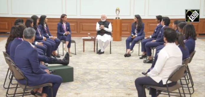 नई दिल्ली: प्रधानमंत्री नरेंद्र मोदी ने बुधवार को महिला क्रिकेट विश्व कप की विजेता भारतीय टीम से अपने आवास पर मुलाकात की। इस अवसर पर उन्होंने खिलाड़ियों को ऐतिहासिक जीत की बधाई दी और देश का गौरव बढ़ाने के लिए आभार व्यक्त किया। मुलाकात के दौरान प्रधानमंत्री और खिलाड़ियों के बीच सौहार्दपूर्ण बातचीत हुई जिसमें टीम की मेहनत, रणनीतियों और खेल भावना पर विस्तृत चर्चा हुई।
