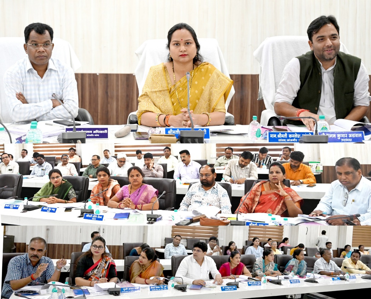 जांजगीर चांपा 06 नवम्बर 2025/ जिला पंचायत जांजगीर-चांपा की सामान्य सभा की बैठक आज जिला पंचायत के सभा कक्ष में सम्पन्न हुई। बैठक की अध्यक्षता जिला पंचायत अध्यक्ष इंजी. सत्यलता आनंद मिरी ने की। बैठक में जिला पंचायत उपाध्यक्ष श्री गगन जयपुरिया, सांसद प्रतिनिधि, विधायक प्रतिनिधि, जिला पंचायत सदस्य श्री लोकेश राठौर, श्रीमती प्रियंका सिंह क्षत्री, सुश्री आशा साव, श्री राजकुमार साहू, श्रीमती प्रमिला साहू, श्रीमती बबीता रात्रे, श्री महादेव नेताम, श्रीमती प्रीति दिब्य, श्रीमती नेहा साहू, श्रीमती संतोषी सिंह रात्रे, श्रीमती उमा राठौर, श्रीमती शशिकला सिंह, जनपद पंचायत अध्यक्ष, जिला पंचायत सीईओ श्री गोकुल रावटे, उप संचालक श्री अभिमन्यु साहू एवं विभिन्न विभागों के अधिकारी उपस्थित रहे।
