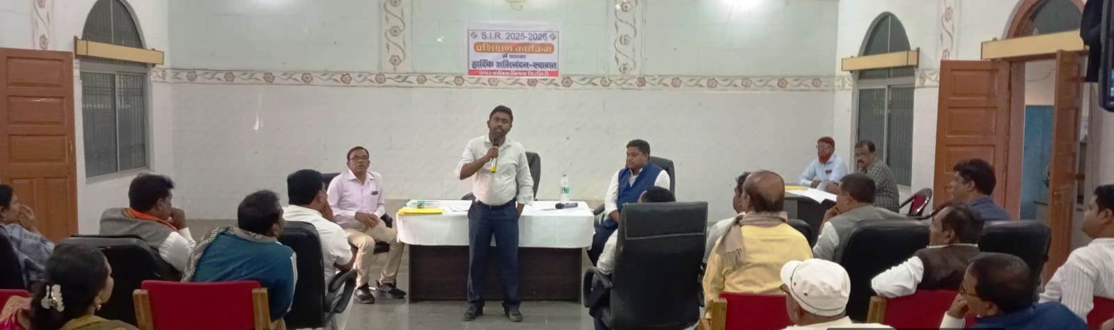 एमसीबी/ भारत निर्वाचन आयोग के निर्देशानुसार छत्तीसगढ़ राज्य में निर्वाचक नामावलियों का विशेष गहन पुनरीक्षण (एसआईआर) कार्यक्रम की घोषणा कर दी गयी है। आयोग द्वारा जारी पुनरीक्षण कार्यक्रम के अनुसार जिले में एसआईआर का कार्य 28 अक्टूबर, 2025 से प्रारंभ कर दिया गया है। इस संबंध में कलेक्टर एवं जिला निर्वाचन अधिकारी डी. राहुल वेंकट ने 3 नवम्बर 2025 को नगर निगम सभागार में प्रशिक्षण आयोजित किया गया। प्रशिक्षण में बीएलओ, सुपर वाईजर, मास्टर ट्रेनर तथा शासकीय अधिकारी-कर्मचारी उपस्थित रहे।