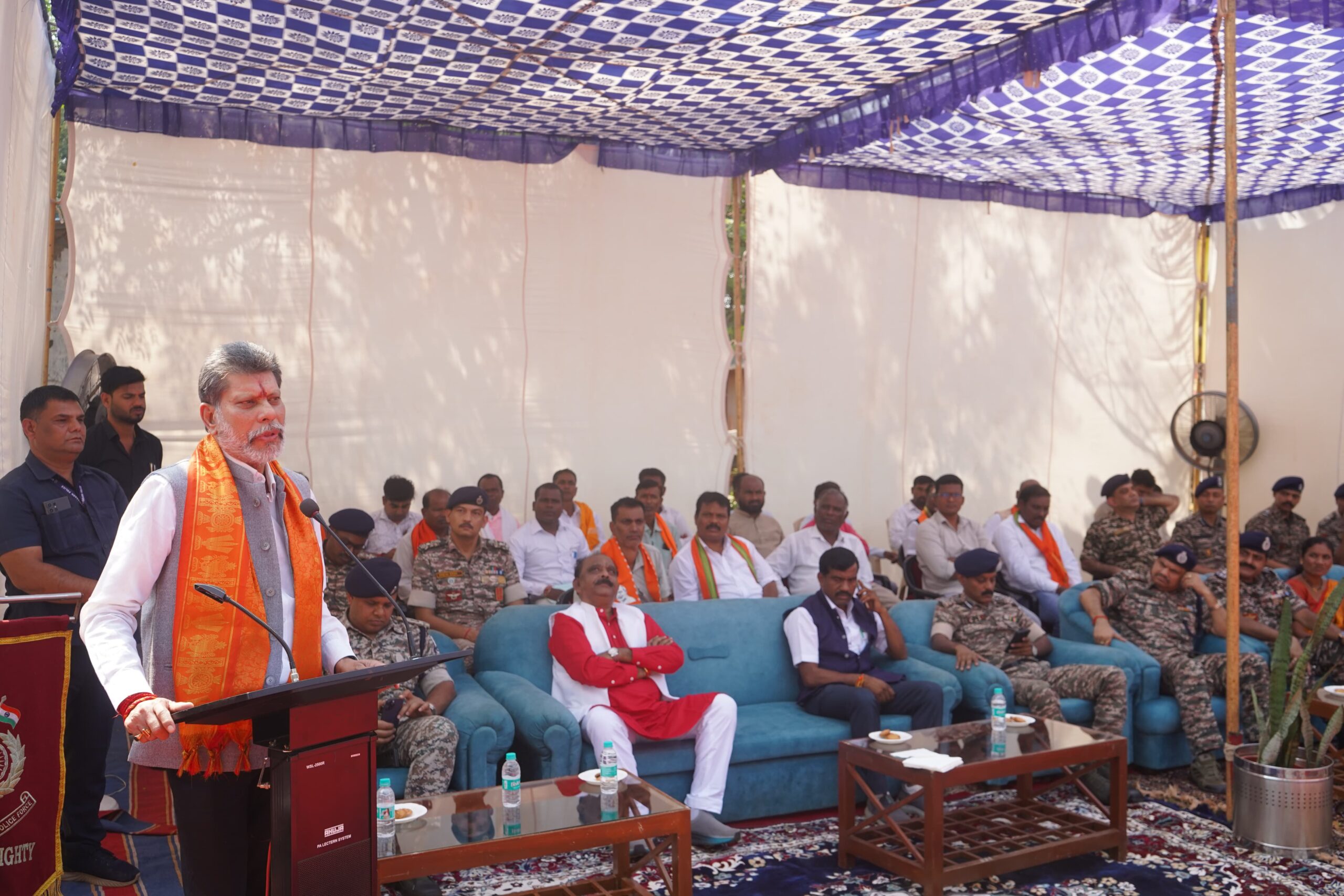 इस अवसर पर कार्यक्रम के मुख्य अतिथि की आसंदी से अपने संबोधन में भाजपा प्रदेश अध्यक्ष किरण सिंह देव ने कहा कि देवेंद्र कुमार की शहादत बस्तर के नवजवानों को माओवाद के खात्मे के लिए सतत प्रेरित करती रही है। सेठिया परिवार द्वारा प्रतिमा स्थापित किए जाने की पहल का स्वागत करते हुए श्री देव ने कहा कि यह प्रतिमा हमें सतत नक्सलमुक्त बस्तर और यहां सुख-शांति व सर्वतोमुखी विकास के लिए प्रेरित करती रहेगी। देवेंद्र कुमार और उन जैसे असंख्य जवानों की शहादत ने शांत छत्तीसगढ़ के संकल्प को साकार किया है। विदित हो कि 8 नवंबर 1992 को धोबीगुड़ा में जन्मे स्व. महेश राम व श्रीमती दयमती सेठिया के सुपुत्र देवेंद्र कुमार सेठिया केन्द्रीय रिजर्व पुलिस बल में 12 सितम्बर 2013 को सिपाही/जीडी के पद पर ग्रुप केंद्र बिलासपुर में भर्ती हुए थे। प्रशिक्षण पूर्ण करने के उपरांत क्रमशः 222/175 एवं 196 बटालियन में तैनात रहे। बीजापुर जिले के ऊसूर थानान्तर्गत गलगम क्षेत्र में मओवादियों द्वारा किए गए आईईडी विस्फोट में 19 अप्रैल 2024 को शहीद हो गए। उनकी स्मृति को चिरस्थायी बनाए रखने के लिए परिजनों की ओर से उनकी प्रतिमा स्थापित की गई है। इस प्रतिमा का अनावरण उनकी जन्मतिथि पर 8 नवंबर को किया गया। इस अवसर पर बस्तर के विधायक लखेश्वर बघेल शहीद की माता दयमती सेठिया, बहन पिंकी सेठिया, भाई योगेंद्र सेठिया, एस. अरुण कुमार डीआईजी रेंज जगदलपुर, एनके सिंह डीआईजी सीआरपीएफ, जितेंद्र कुमार, एसपी शलभ कुमार सिन्हा, जनपद अध्यक्ष सोनवारी भद्रे, उपाध्यक्ष तरुण पांडे, मंडल अध्यक्ष पुरुषोत्तम जोशी, पूर्व मंडल अध्यक्ष धनुर्जय कश्यप, गजानंद दास, सरपंच संतोष कश्यप और बड़ी संख्या में ग्रामवासी उपस्थित थे।