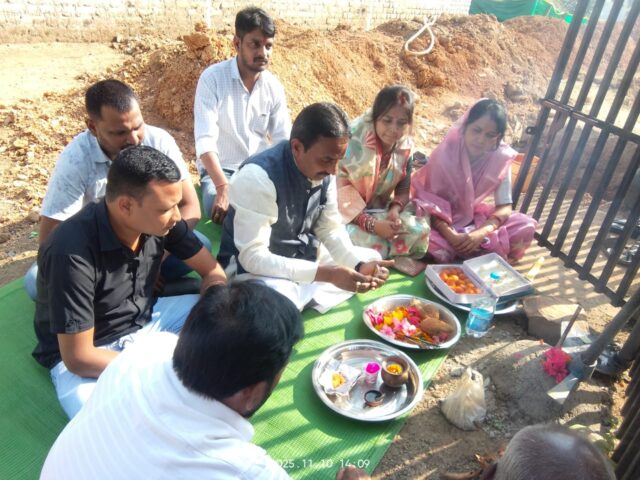 कोरबा/पाली:- पाली नगर पंचायत में पटेल समाज की बहुप्रतीक्षित मांग थी कि पटेल समाज के लिए एक सर्वसुविधा युक्त भवन निर्माण कराया जाए, उक्त मांग को ध्यान में रखते हुए शासकीय अनुदान से 21 लाख रु की राशि शासन द्वारा प्रदान की गई है, उक्त कार्य का आज विधिवत पूजा अर्चना कर भूमिपूजन नपं अध्यक्ष अजय जायसवाल द्वारा किया गया, ज्ञात हो कि पाली नगर में पटेल समाज की बाहुल्यता है और पटेल समाज राजनीतिक एवं सामाजिक गतिविधियों के अपनी महत्वपूर्ण भूमिका निभाती है, उक्त भवन की मांग पूर्व होने से समाज में हर्ष है क्योंकि उसी स्थान पर कुछ दिनों पूर्व माता शाकंभरी का भव्य मंदिर निर्माण एवं स्थापना किया गया है जहां भवन निर्माण हो जाने से धार्मिक एवं सामाजिक कार्य करने में आसानी होगी, इस भूमिपूजन अवसर पर प्रमुख रूप से नपं अध्यक्ष अजय जायसवाल,पूर्व अध्यक्ष एवं पार्षद उमेश चंद्रा (बंटू),पार्षद बबलु पटेल,पार्षद दीप्ति दीपक शर्मा,पार्षद आशा समीन पटेल,पार्षद ज्योति ऊईके,मुरली मनोहर पटेल,दीपाली राय,भाजयुमो जिला मीडिया प्रभारी दीपक शर्मा आदि प्रमुख से उपस्थित थे।