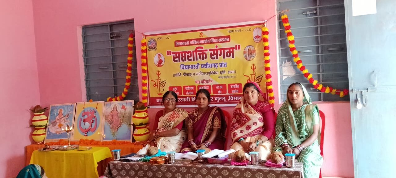 आरंग- ग्राम भारती शिक्षा समिति के आयोजन में सरस्वती शिशु मंदिर गुल्लू में सप्त शक्ति संगम कार्यक्रम मंगलवार को संपन्न हुआ। कार्यक्रम की शुरुवात दीप प्रज्वलन के बाद मां सरस्वती वंदना से हुई।सह प्रधानाचार्य लुकेश्वरी लोधी ने अतिथियों का स्वागत किया।कार्यक्रम का मुख्य उद्देश्य महिलाओं में मातृ शक्ति और सामाजिक सशक्तिकरण को बढ़ावा देना है।मुख्य वक्ता श्रीमती पुष्पा मोहंती ने मातृ शक्तियों के महत्व और परिवार समाज में उनके योगदान की बात कही।मुख्य अतिथि नीतेश्वरी लोधी ने महिलाओं को सुरक्षित जीवन, आत्मरक्षा और सामाजिक जिम्मेदारियों के बारे में मार्गदर्शन दिया। कार्यक्रम में मातृ शक्ति से धार्मिक प्रश्न पूछे गए और उनके उतरो के आधार पर उन्हें सम्मानित किया गया।इसके अलावा महिलाओं ने अपने अनुभव साझा किया।कार्यक्रम का संचालन और आभार व्यक्त करने की जिम्मेदारी लुकेश्वरी लोधी ने निभाई।