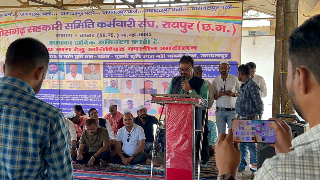 बस्तर संभाग सहकारी समिति कर्मचारी संघ द्वारा जगदलपुर के कृषि ऊपज मंडी प्रांगण में अपनी चार सूत्रीय मांग को लेकर अनिश्चित कालीन धरना प्रदर्शनकिया जा रहा है। आज जगदलपुर के पूर्व विधायक एवं संसदीय सचिव रेखचंद जैन ने हड़ताल पर बैठे कर्मचारियों की मांगो का धरना स्थल पर पहुंच कर समर्थन किया।