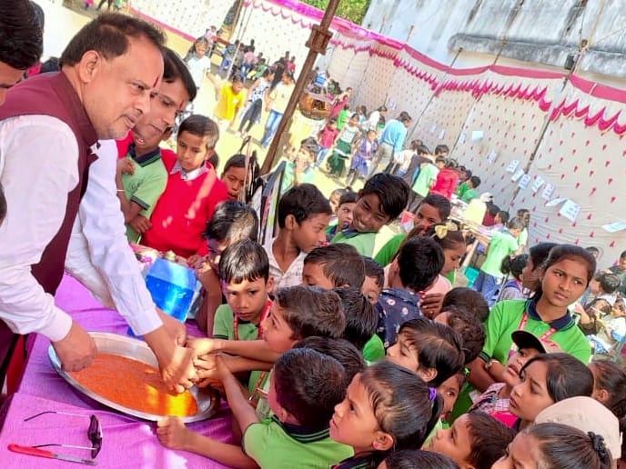 आनंद मेला के शुभारंभ मां सरस्वती, भारत माता, चाचा नेहरू के चित्र पर माल्यार्पण व दीप प्रज्वलन के साथ हुआ तत्पश्चात मुख्य अतिथि अधिवक्ता चितरंजय पटेल के साथ मंचस्थ अतिथि योम लहरे, उदय मधुकर, प्रेम चौहान, महेंद्र बरेठ, पुष्पेंद्र चंद्रा आदि का तिलक चंदन एवं पुष्प गुच्छ भेंट कर अभिनंदन किया गया।