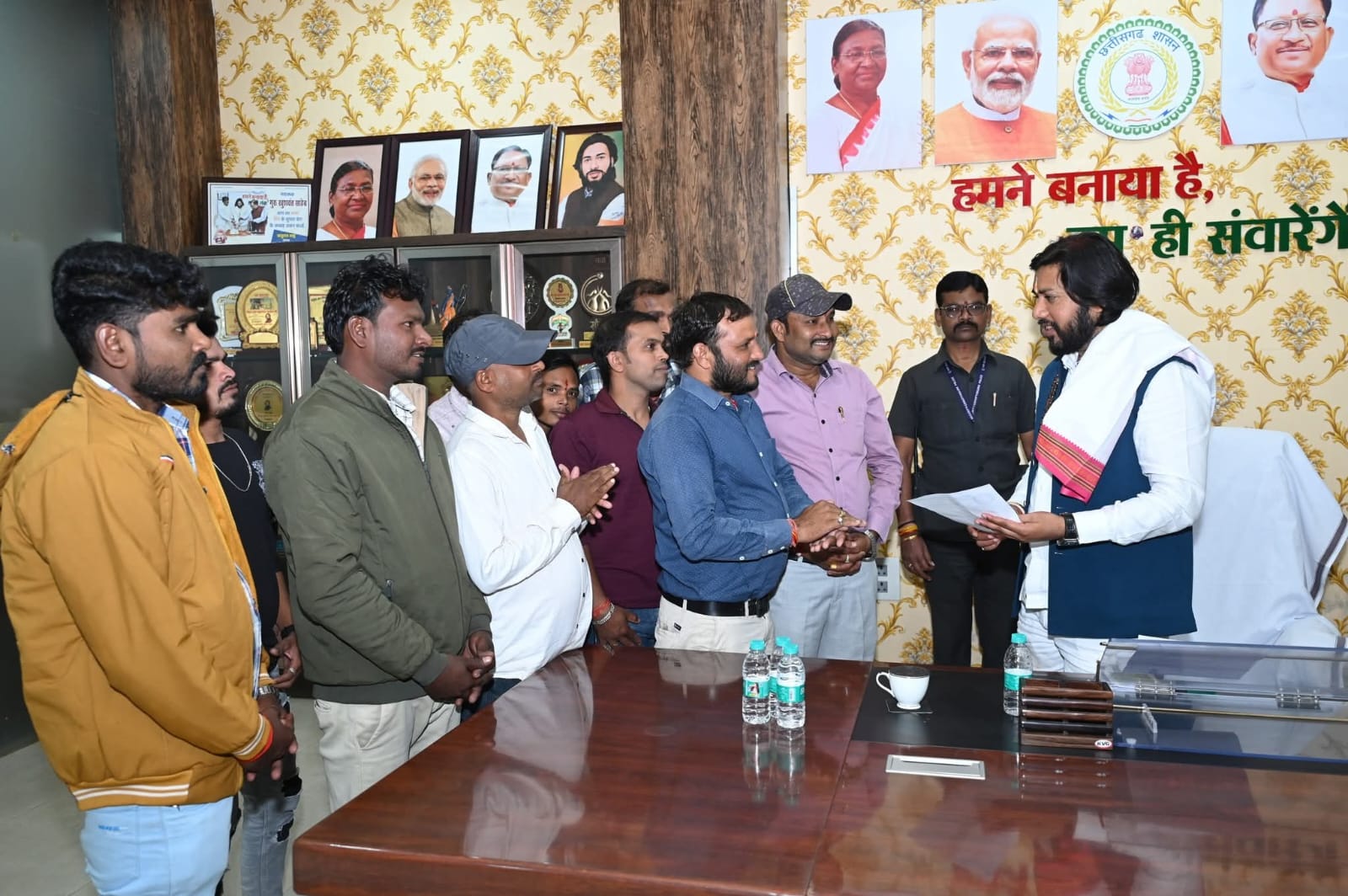आरंग/रायपुर । छत्तीसगढ़ सरकार के कैबिनेट मंत्री एवं आरंग विधानसभा क्षेत्र के विधायक गुरु खुशवंत साहेब ने सोमवार को आरंग के नेताजी चौक स्थित क्षेत्रीय कार्यालय में जनदर्शन आयोजित किया। मंत्री बनने के बाद पहली बार अपने क्षेत्रीय कार्यालय पहुंचे मंत्री जी का आमजन और जनप्रतिनिधियों ने गर्मजोशी से स्वागत किया। सुबह से ही कार्यालय परिसर में लोगों की भीड़ उमड़ पड़ी थी तथा बड़ी संख्या में नागरिक अपनी समस्याएं लेकर पहुंचे।