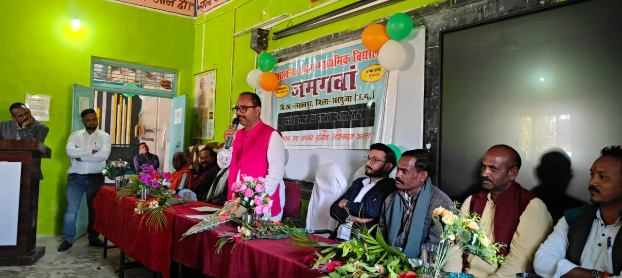 छत्तीसगढ़ सरकार की महत्वकांक्षी सरस्वती साइकिल योजना अंतर्गत लखनपुर विकासखंड के शासकीय उच्चतर माध्यमिक विद्यालय जमगंवा में निशुल्क साइकिल वितरण कार्यक्रम का आयोजन किया गया था इस कार्यक्रम में मुख्यअतिथि जिला पंचायत उपाध्यक्ष देवनारायण यादव विशिष्ट अतिथि जनपद अध्यक्ष श्रीमति शशिकला विक्रम सिंह, सरपंच सूर्यबहादुर सिंह भाजपा जिला उपाध्यक्ष चंद्रिका प्रसाद यादव, महामंत्री विक्रम सिंह,s m d c के अध्यक्ष डी.एन.यादव, अयोध्या प्रसाद यादव, ननका यादव, पप्पूयादव, रामगोविंद सिंह, पूना राम,शिवचरण,जय भगवान संहिता अन्य अतिथि मौजूद रहे। जहां सर्वप्रथम माता सरस्वती के छायाचित्र के समक्ष अतिथियों ने दीप प्रज्वलित कर पुष्प अर्पित करते हुए कार्यक्रम का शुभारंभ किया है। स्कूल के प्रचार और शिक्षकों के द्वारा अतिथियों को पुष्प गुच्छ देकर स्वागत किया गया है। तत्पश्चात जिला पंचायत उपाध्यक्ष देवनारायण यादव जनपद अध्यक्ष शशिकला विक्रम सिंह ने अपने संबोधन में छात्राओं के उज्जवल भविष्य की कामना कर उन्हें पढ़ाई के लिए प्रेरित किया। अतिथियों के हाथों कक्षा नौवीं में अध्यनरत 19 छात्राओं को निशुल्क साइकिल का वितरण किया गया साइकिल पाकर छात्राएं खुश नजर आए और साइकिल की घंटी बजाकर अतिथियों का अभिवादन किया है। इस दौरान प्राचार्य महेश कुमार कुशवाहा, मनोज सिंह, श्री झारिया शिक्षक शिक्षिकाएं छात्र छात्राएं उपस्थित रहे।