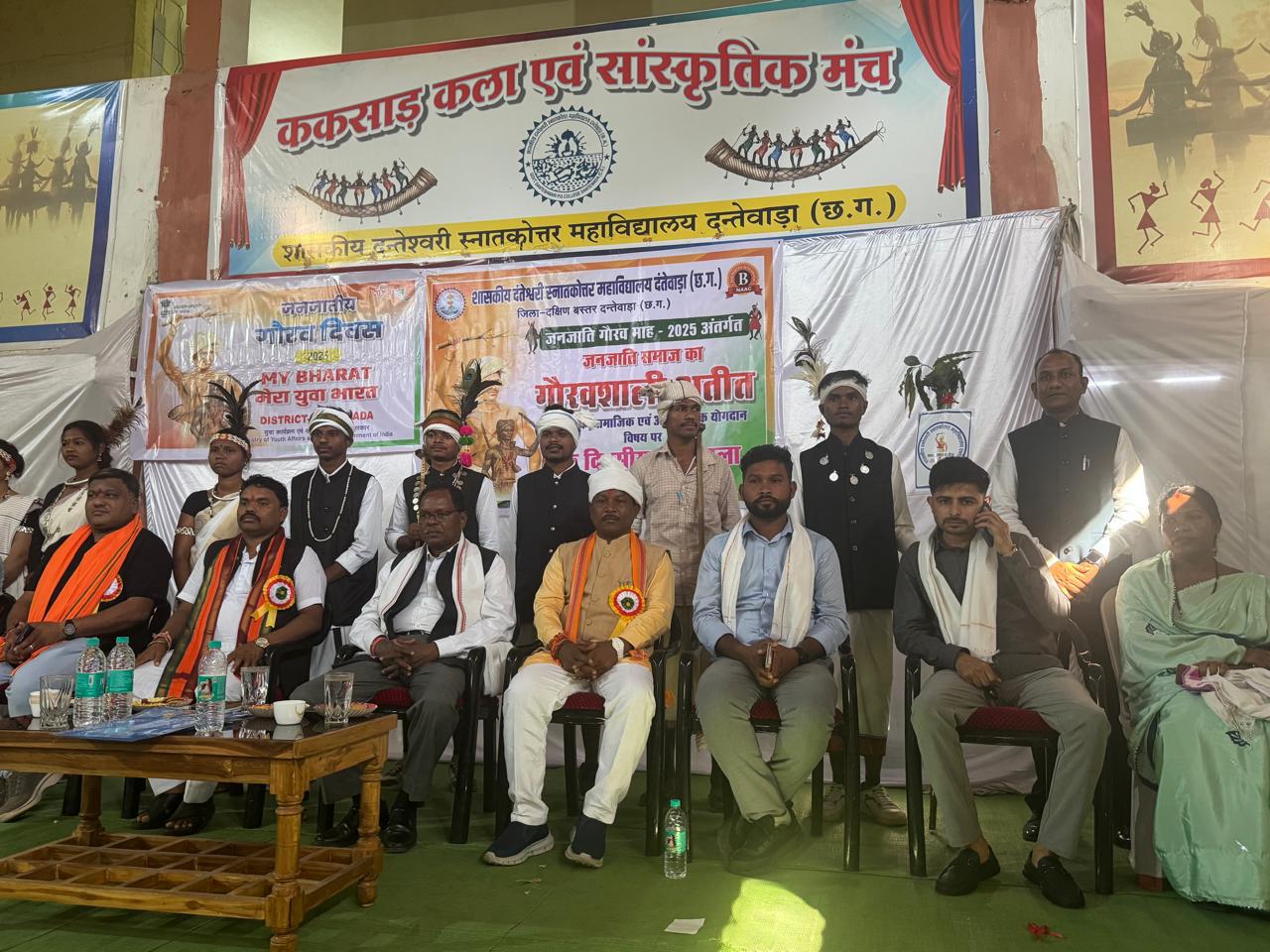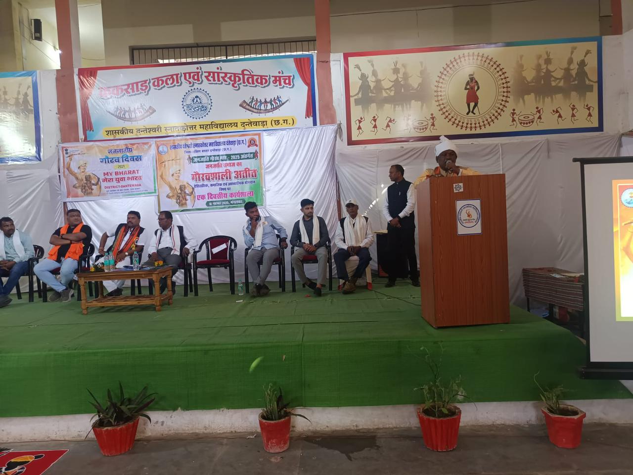 दंतेवाड़ा | शासकीय दंतेश्वरी स्नातकोत्तर महाविद्यालय दंतेवाड़ा में जनजाति गौरव माह अंतर्गत जनजाति समाज का गौरवशाली अतीत-ऐतिहासिक,सामाजिक एवं आध्यात्मिक योगदान विषय में एक दिवसीय कार्यशाला का आयोजन किया गया | कार्यक्रम में मुख्य अतिथि बस्तर सांसद महेश कश्यप,मुख्य वक्ता सेवानिवृत अतिरिक्त पुलिस अधीक्षक,प्रांत संयोजक जनजाति सुरक्षा मंच छत्तीसगढ़ गोरखनाथ बघेल,विशिष्ठ अतिथि भाजपा जिलाध्यक्ष दंतेवाड़ा संतोष गुप्ता, जिला पंचायत अध्यक्ष दंतेवाड़ा नन्दलाल मुडामि,जिला पंचायत उपाध्यक्ष दंतेवाड़ा अरविन्द कुंजाम,जनभागीदारी अध्यक्ष शासकीय दंतेश्वरी स्नातकोत्तर महाविद्यालय दंतेवाड़ा राहुल असरानी,मंडल अध्यक्ष दंतेवाड़ा जय भंसाली,जिला पंचायत सदस्य तिलेस्वरी नागेश,सरपंच ग्राम पंचायत चितालंका मुन्नी भास्कर उपस्थित रहे | बस्तर सांसद महेश कश्यप का भाजपा पदाधिकारी,कार्यकर्ताओं,जनप्रतिनिधियों,छात्र-छात्राओं एवं शिक्षकों ने पुष्पगुच्छ भेंट कर आत्मीय स्वागत किया |