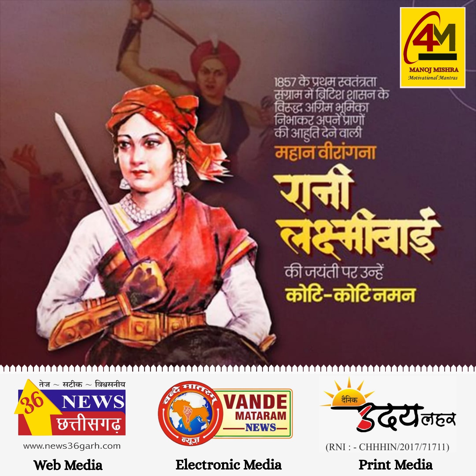 रानी लक्ष्मीबाई सिर्फ एक योद्धा नहीं थीं, बल्कि एक विचार थीं, एक प्रेरणा थीं और हैं, जो हर युग की महिलाओं को साहस और आत्मनिर्भरता का संदेश देती हैं। उनकी जयंती पर हम सभी को उनके अदम्य साहस, नेतृत्व और बलिदान से प्रेरणा लेकर राष्ट्र के प्रति अपने कर्तव्यों का स्मरण करना चाहिए।