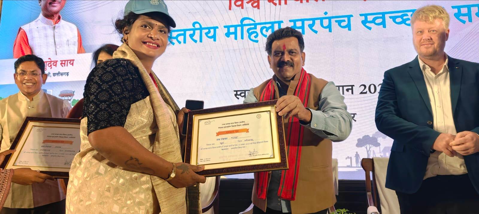 एमसीबी/ अंतरराष्ट्रीय विश्व शौचालय दिवस के अवसर पर नवा रायपुर स्थित मेफेयर परिसर में राज्य स्तरीय महिला सरपंच स्वच्छता सम्मेलन का भव्य आयोजन किया गया। स्वच्छ भारत मिशन (ग्रामीण) अंतर्गत स्वच्छता के विभिन्न आयामों पर सक्रिय और उत्कृष्ट कार्य करने वाली ग्राम पंचायतों को इस सम्मेलन में सम्मानित किया गया।