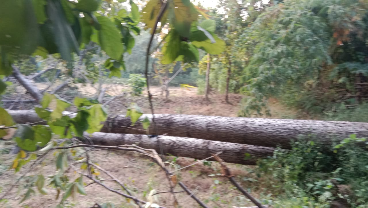 ग्राम पंचायत तेंदुटोहा में सरकारी परिसर में बिना अनुमति पेड़ों की अवैध कटाई जोरो पर