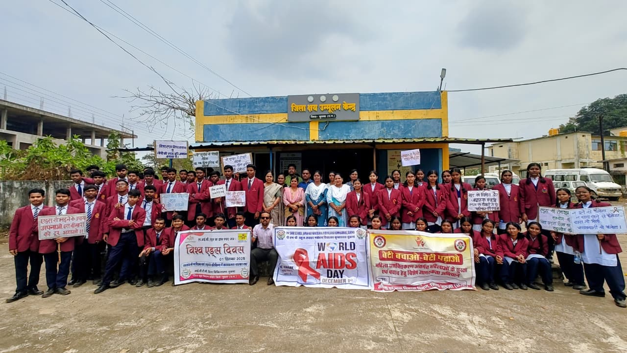 सुकमा, 01 दिसंबर 2025/ विश्व एड्स दिवस के अवसर पर सुकमा जिले में जन जागरूकता चलाया गया। जवाहर नवोदय विद्यालय कुम्हाररास सुकमा और बालिका पोटाकेबिन विद्यालय सुकमा के छात्र–छात्राओं ने संयुक्त रूप से एक प्रभावी एचआईवी, एड्स जनजागरूकता रैली निकालकर आमजन को स्वास्थ्य सुरक्षा और सावधानियों का संदेश दिया।