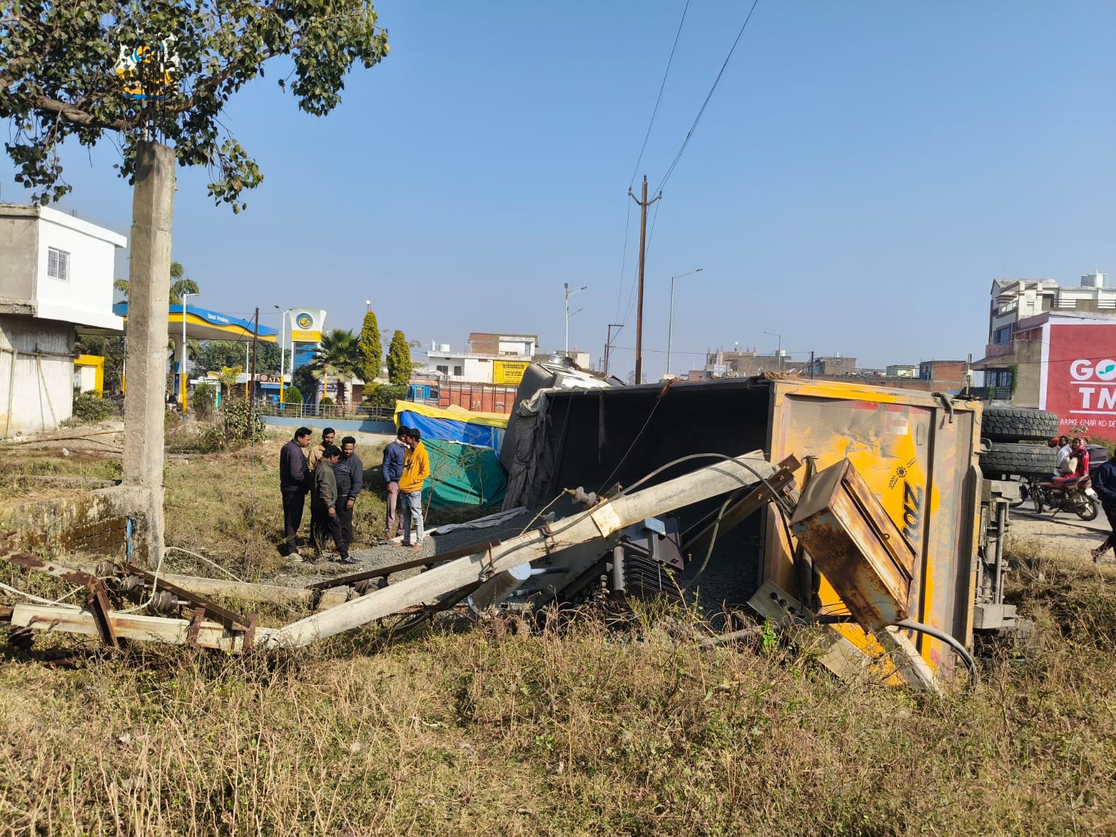 लखनपुर थाना क्षेत्र के अंबिकापुर बिलासपुर नेशनल हाईवे 130 स्थित नारायण पेट्रोलियम के पास 4 दिसंबर दिन गुरुवार की सुबह लगभग 7बजे बिलासपुर से अंबिकापुर की ओर कैलेंकर लोड कर जा रही ट्रेलर अनियंत्रित होकर ट्रांसफार्मर और स्ट्रीट लाइट को ठोकर मारते हुए पलट गई वहीं चालक गाड़ी छोड़कर मौके से फरार हो गया प्रत्यक्ष दर्शियों की मिली जानकारी के मुताबिक ट्रेलर क्रमांक सीजी 10 बीपी 49 29 जो क्लिंकर लोड़कर बिलासपुर से अंबिकापुर की ओर जा रहा था चलती ट्रेलर वाहन के अचानक बंद होने से वाहन का स्टेरिंग जाम हो गया और अनियंत्रित ट्रेलर सड़क किनारे स्थित ट्रांसफार्मर और स्ट्रीट लाइट को ठोकर मारते हुए पलट गई। वहीं चालक बाल बाल बच गया।चालक गाड़ी से निकलकर मौके से भाग गया। ठोकर इतनी जोरदार थी कि ट्रांसफार्मर के दोनों पोल टूट गए गनीमत रही की ठोकर लगने के बाद ट्रांसफार्मर से आज नहीं लगा और एक बड़ा हादसा टल गया।