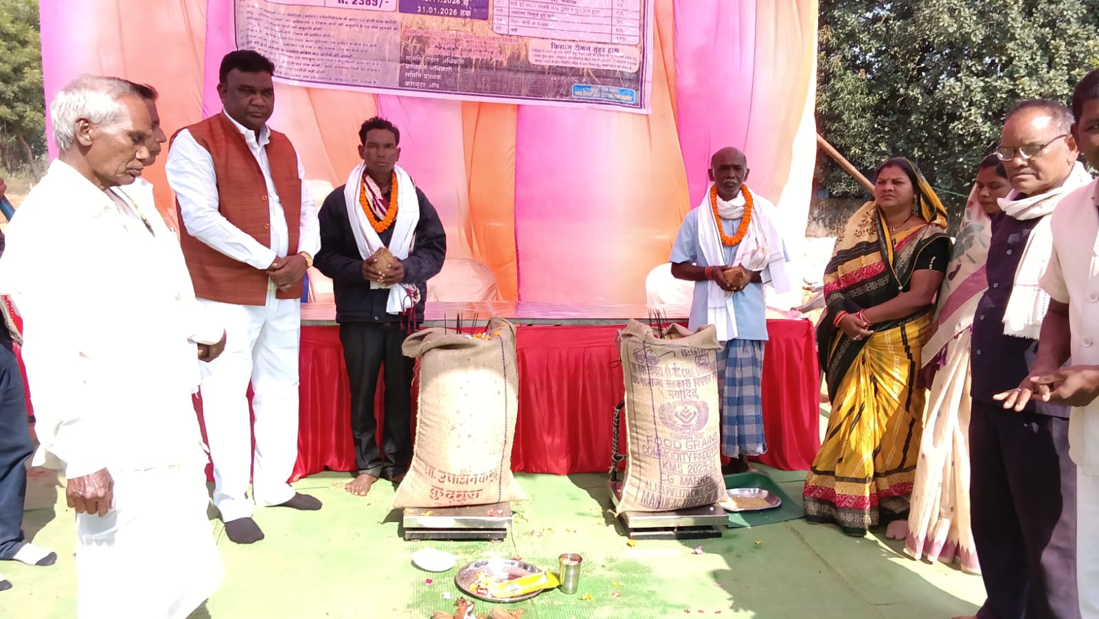 सहित भारी संख्या में ग्रामीणजन, किसान और उपार्जन केंद्र के कर्मचारी मौजूद रहे।
