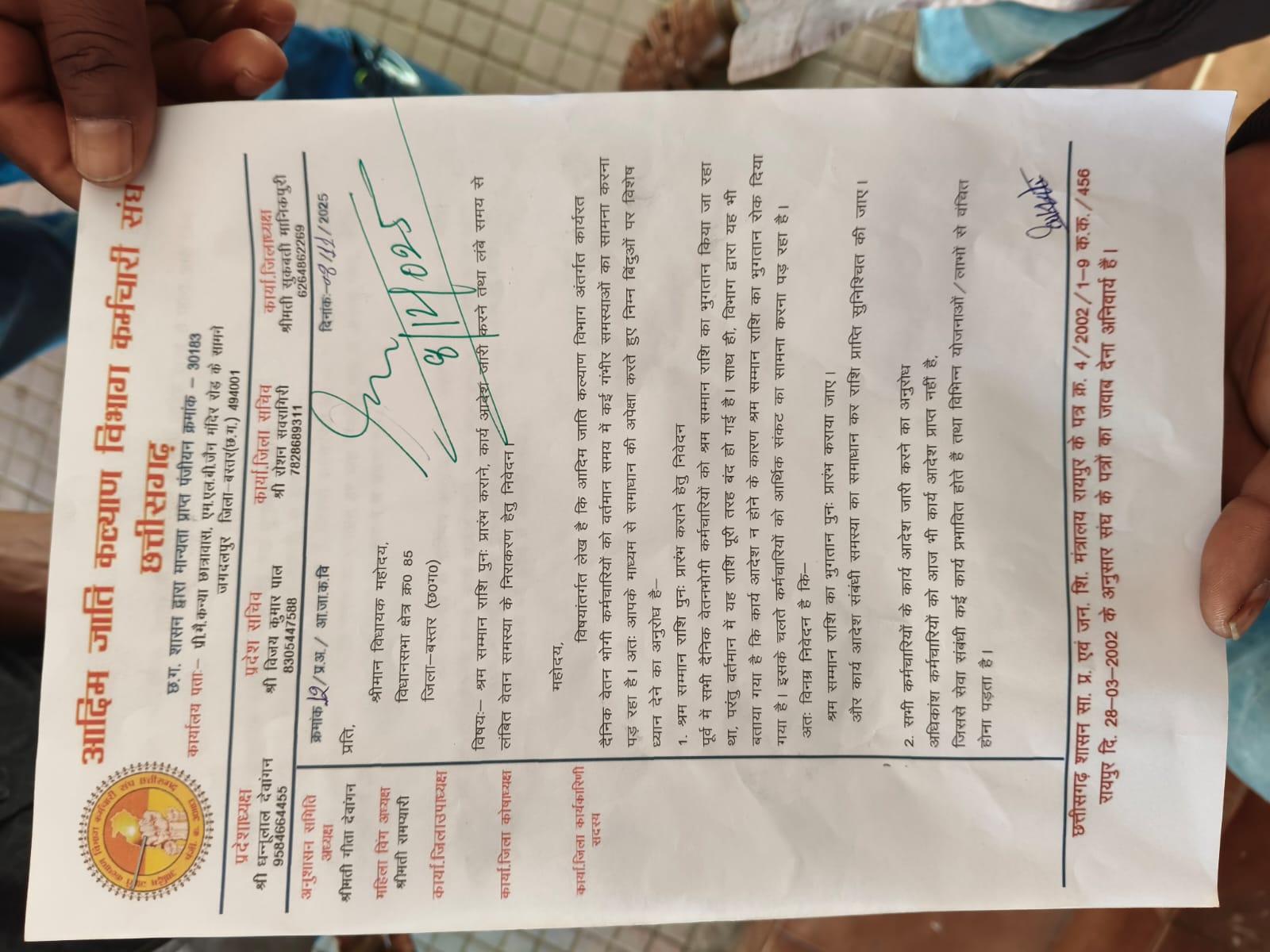 कर्मचारियों की प्रमुख समस्याएं और मांगें कुछ इस तरह हैं- कई माह से कर्मचारियों को कार्य आदेश जारी नहीं किया गया है, जिससे असुरक्षा एवं अनिश्चितता का माहौल बना हुआ है। संघ ने सभी कर्मचारियों को तत्काल कार्य आदेश जारी करने की मांग की। कर्मचारियों को सेवा अवधि के अनुरूप ईपीएफ, बीमा, चिकित्सा सुविधा और सेवा सुरक्षा लाभ उपलब्ध नहीं कराए जा रहे हैं। संघ ने इसे प्राथमिकता से लागू करने की मांग की। सबसे गंभीर समस्या यह है कि कर्मचारियों को 5 से 6 महीने तक नियमित वेतन नहीं मिलता है, जिससे परिवार का भरण-पोषण प्रभावित हो रहा है। संघ ने वेतन भुगतान को हर माह नियमित करने की मांग रखी। संघ ने बस्तर विधायक लखेश्वर बघेल से आग्रह किया कि उपरोक्त मांगों पर शीघ्र निर्णय लेते हुए कर्मचारियों को राहत प्रदान की जाए, ताकि वे सम्मानजनक तरीके से अपना कार्य कर सकें और उनका परिवार आर्थिक संकट से उबर सके। संघ ने यह भी चेतावनी दी है कि यदि समय सीमा में समाधान नहीं किया गया, तो संगठन आदिम जाति कल्याण विभाग के विरुद्ध चरणबद्ध आंदोलन के लिए बाध्य होगा।