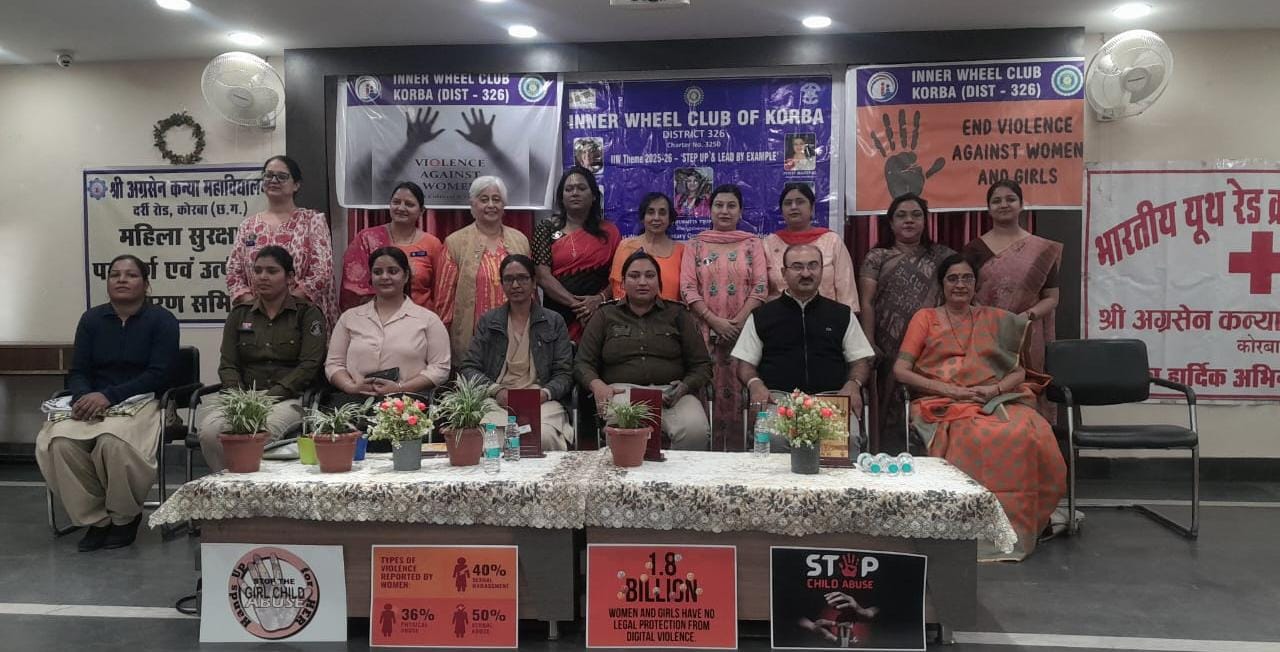 इनरव्हील क्लब कोरबा द्वारा “Orange the World – Stop Violence Against Women & Girls” अभियान के अंतर्गत महिलाओं एवं बालिकाओं की सुरक्षा, आत्मविश्वास तथा मानसिक सशक्तिकरण पर आधारित एक महत्वपूर्ण जागरूकता संगोष्ठी का आयोजन किया गया। कार्यक्रम का मुख्य उद्देश्य समाज में महिला सुरक्षा के प्रति जागरूकता बढ़ाना और आत्मविश्वास को मजबूत करना था।