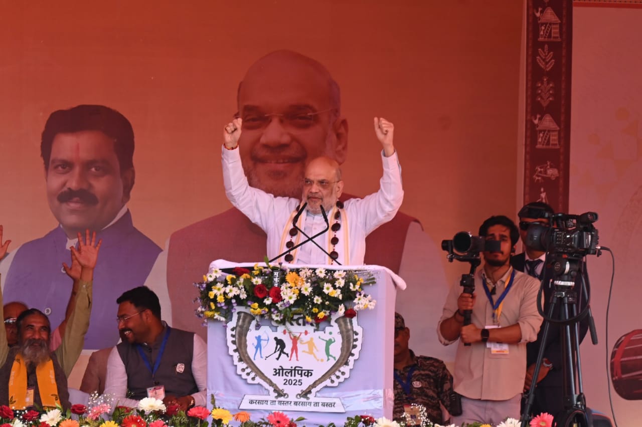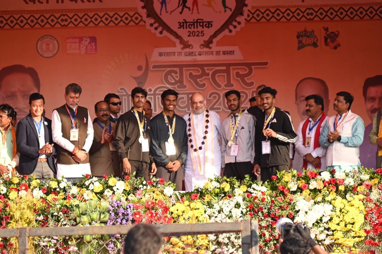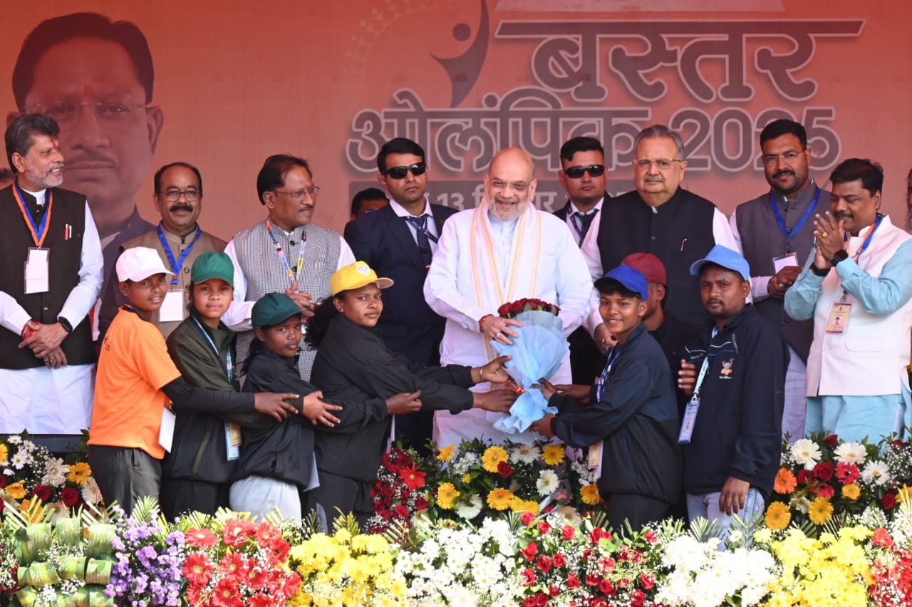 जगदलपुर। केंद्रीय गृह एवं सहकारिता मंत्री अमित शाह ने शनिवार को जगदलपुर में बस्तर ओलिंपिक के समापन समारोह को संबोधित किया। इस अवसर पर छत्तीसगढ़ के मुख्यमंत्री विष्णुदेव साय, विधानसभा अध्यक्ष डॉ. रमन सिंह, उपमुख्यमंत्री विजय शर्मा, अरूण साव, भाजपा प्रदेश अध्यक्ष किरण सिंह देव, वन मंत्री केदार कश्यप, सांसद बस्तर महेश कश्यप, सांसद कांकेर भोजराज नाग सहित अनेक गणमान्य व्यक्ति उपस्थित थे।