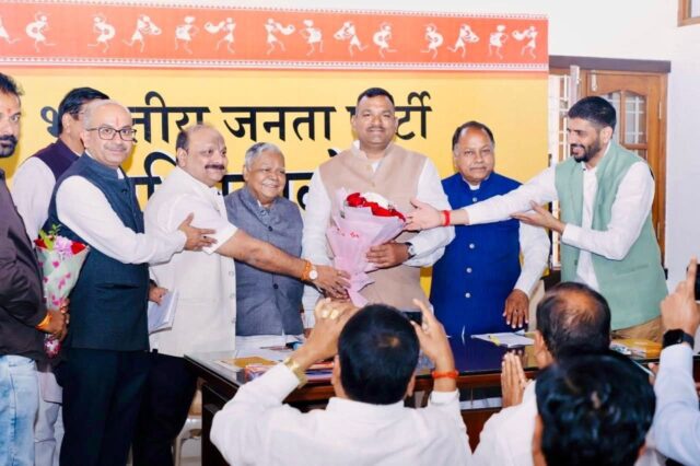 भाजपा प्रदेश कार्यालय रायपुर में भारतीय जनता पार्टी आर्थिक प्रकोष्ठ के प्रदेश संयोजक श्री शिव चंद्राकर एवं सह संयोजक श्री मनीष पारख ने प्रदेश संगठन महामंत्री श्री पवन साय जी के गरिमामयी उपस्थिति में पदभार ग्रहण किया।