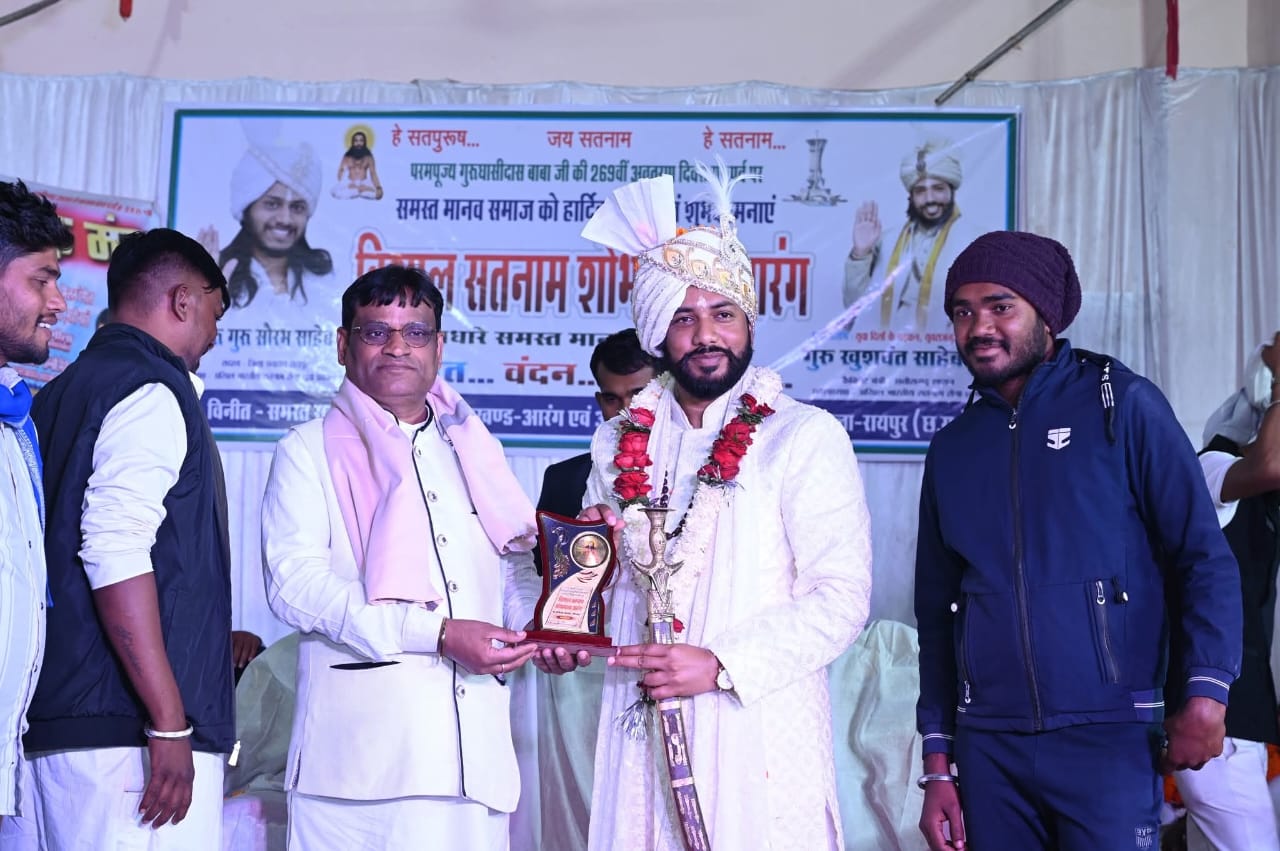 साथ ही उन्होंने शिक्षा और संस्कार के महत्व पर विशेष बल देते हुए कहा—गुणवत्तापूर्ण शिक्षा एवं उत्तम संस्कार ही मानव जीवन का मूल मंत्र हैं। समाज के सर्वांगीण विकास के लिए आवश्यक है कि हम अपने बच्चों को सुसंस्कृत, चरित्रवान और जिम्मेदार नागरिक बनने की दिशा में प्रेरित करें। जब बच्चे आगे बढ़ेंगे, तभी समाज और राष्ट्र मजबूत होगा। शोभायात्रा में आरंग नगर एवं ग्रामीण क्षेत्रों से हजारों की संख्या में समाजजन उमड़े। कार्यक्रम में जनप्रतिनिधिगण, सतनामी समाज के विभिन्न पदाधिकारी, अखिल भारतीय सतनाम सेना, सर्वसमाज के सदस्यों सहित दूर-दूर से आए श्रद्धालु बड़ी संख्या में मौजूद रहे। विभिन्न झांकियों, ध्वज-वंदन, सतनाम जय-जयकार और सांस्कृतिक प्रस्तुतियों से शोभायात्रा का दृश्य अत्यंत भव्य और आध्यात्मिक रहा। समारोह के अंत में समाजजनों ने मंत्री गुरु खुशवंत साहेब को सम्मान प्रदान कर उनके मार्गदर्शन व सतत सामाजिक सेवा के लिए आभार व्यक्त किया। पूरे कार्यक्रम में हर्ष, उत्साह और आध्यात्मिक ऊर्जा का माहौल बना रहा।