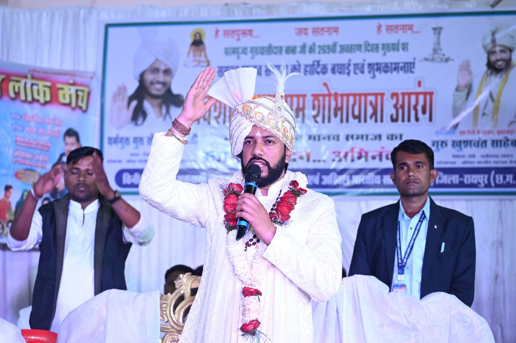 कार्यक्रम की शुरुआत प्रातः स्मरणीय परम् पूज्य गुरु घासीदास बाबा जी एवं सेतखाम की विधिवत पूजा-अर्चना से हुई। मंत्री गुरु खुशवंत साहेब ने बाबा जी के चरणों में नमन करते हुए समस्त मानव समाज के सुख, समृद्धि एवं वैभवपूर्ण जीवन की मंगलकामनाएं कीं। उन्होंने कहा कि परम् पूज्य गुरु घासीदास बाबा जी के अमर उपदेश आज भी समाज को सत्य, अहिंसा और समानता के पथ पर अग्रसर करने में प्रेरणास्रोत हैं। शोभायात्रा में गुरु खुशवंत साहेब ने गुरुवाणी के माध्यम से सभी समाजबंधुओं का मार्गदर्शन किया। उन्होंने कहा कि बाबा जी का संदेश केवल एक समाज के लिए नहीं, बल्कि संपूर्ण मानवता के कल्याण का मार्ग है। उन्होंने आह्वान किया कि सभी लोग गुरु विचारों को आत्मसात कर सत्य, करुणा और समभाव के पथ पर चलें तथा इस अलौकिक संदेश को जन-जन तक पहुँचाने में अपनी महत्वपूर्ण भूमिका निभाएँ।