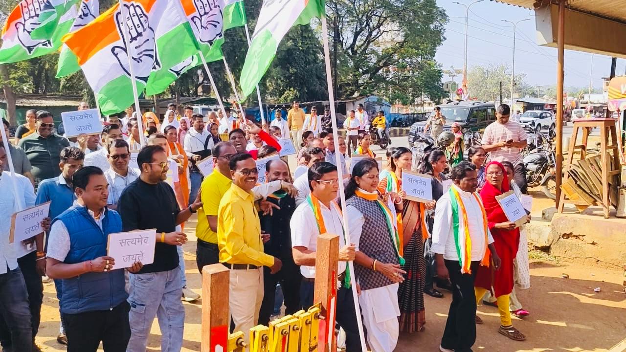 -बीजापुर में कांग्रेस के कार्यकर्ताओं ने घेरा जिला भाजपा कार्यालय =