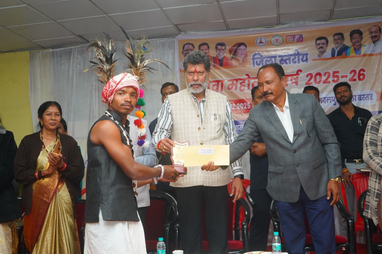 जगदलपुर । जिला स्तरीय युवा महोत्सव का गरिमामय एवं उत्साहपूर्ण आयोजन इंदिरा प्रियदर्शिनी स्टेडियम परिसर स्थित खेल एवं युवा कल्याण विभाग के कार्यालय में शनिवार 20 दिसंबर को किया गया। युवा महोत्सव के समापन के अवसर पर विजेताओं को पुरस्कृत किया गया। इस अवसर पर भाजपा प्रदेश अध्यक्ष एवं विधायक श्री किरण सिंह देव मुख्य अतिथि तथा जिला पंचायत सदस्य एवं खेल एवं युवा कल्याण समिति के सभापति श्री बनवासी मौर्य अध्यक्ष के रूप में उपस्थित रहे। महोत्सव का उद्देश्य जिले की उभरती युवा प्रतिभाओं को मंच प्रदान कर उनका मनोबल बढ़ाना रहा।