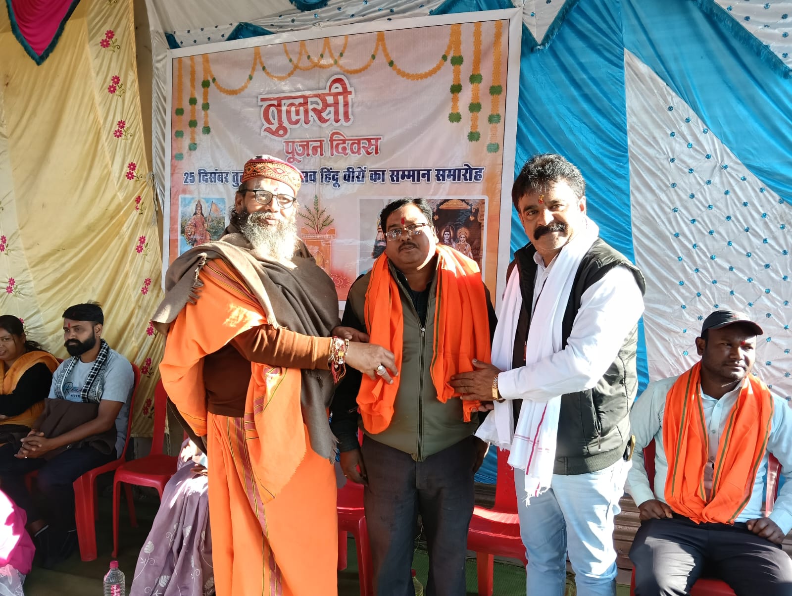 पूजन के दौरान मातृशक्तियों ने भजन-कीर्तन के माध्यम से वातावरण को भक्तिमय बनाया तथा यह संकल्प लिया कि प्रत्येक परिवार अपने घर में तुलसी रोपण व नियमित पूजन करेगा। कार्यक्रम में नशा मुक्ति, स्वदेशी अपनाने एवं राष्ट्रहित जैसे विषयों पर भी संदेश दिया गया आयोजन की शुरुआत आयोजन और अतिथियों द्वारा माता तुलसी के पूजा के पश्चात माता मातीनदाई के स्थान पर आरती व दीप प्रज्वलित कर विश्व हिंदू परिषद जिला अध्यक्ष हर्ष छाबरिया के उद्बोधन से प्रारंभ हुआ अपने ओजस्वी भाषण में हर्ष छाबरिया ने बताया कि किस तरह धर्म परिवर्तन का खेल खेला जा रहा है हम सभी को एकजुट होकर उन सभी कार्यों को रोकते हुए संगठित होकर रहने का बात करते हुए हर संभव प्रयास और हर संभव मदद करने की वचन दिया उद्बोधन के क्रम में महाराज कृष्ण प्रपन्नाचार्य जी के द्वारा तुलसी की विशेषता बताते हुए उनके महत्व पर सभी जन समुदाय को तुलसी पूजन करने का आग्रह करते हुए सभी को आशीष वचन से सभी को संबोधित कर आनंदित और आशीर्वचन आशीर्वाद दिया मंच संचालन मुकेश जायसवाल के द्वारा किया गया आभार व्यक्त दमदम सरपंच पति विनोद एक्का के द्वारा किया गया आयोजन में उपस्थित हिंदू समाज के हिंदू वीरों को अंग वस्त्र देखकर सम्मानित भी किया गया जो निरंतर हिंदू समाज के लिए कार्य करते रहते हैं।