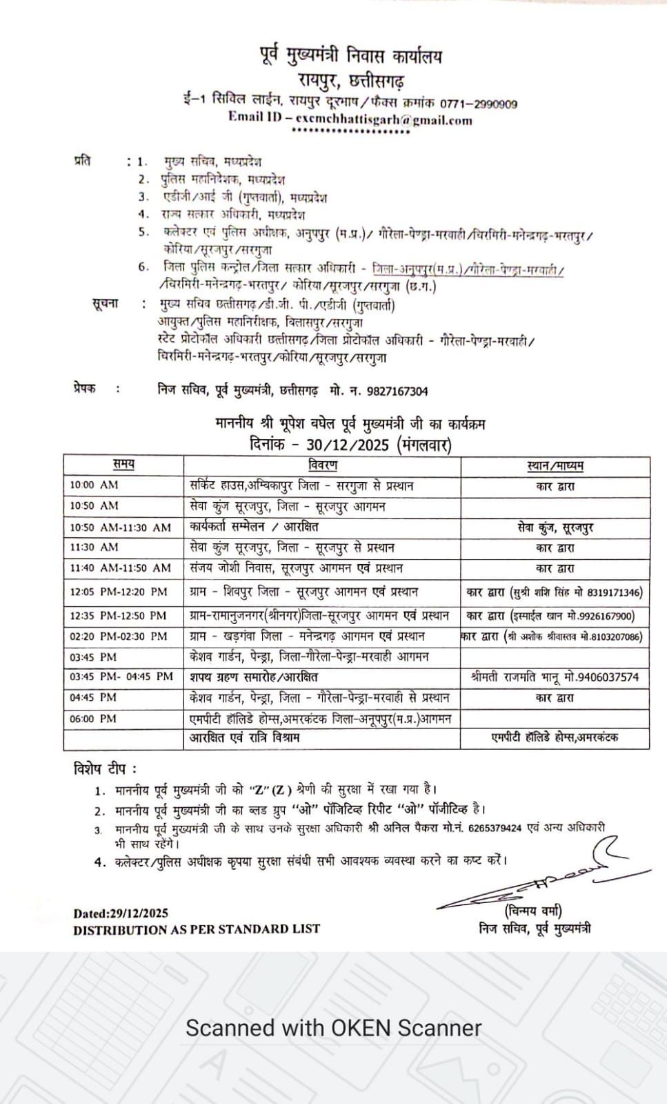पूर्व मुख्यमंत्री भूपेश बघेल मंगलवार दोपहर 3:30 बजे दुर्गा चौक बस स्टैंड, पेंड्रा पहुंचेंगे, जहां उनका स्वागत किया जाएगा। इसके पश्चात वे शाम 4:00 बजे केशव गार्डन, नया बस स्टैंड पेंड्रा पहुंचेंगे, जहां शपथ ग्रहण समारोह आयोजित है।