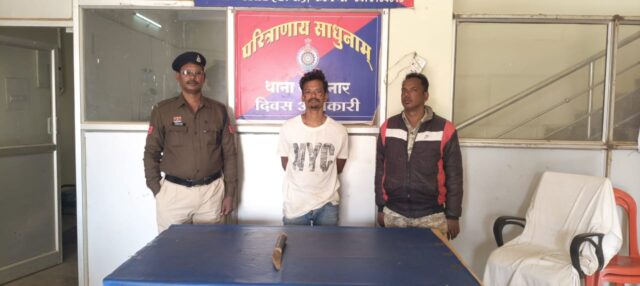 जगदलपुर। नववर्ष को दृष्टिगत रखते हुये थाना नगरनार क्षेत्र में शांति व्यवस्था बनाये रखने पुलिस अलर्ट मोड पर है।असामाजिक तत्वों पर कार्रवाई की जा रही है। इसी कड़ी में आज 29 दिसंबर को एनएमडीसी प्लांट मटेरियल गेट के सामने एनएच 63 मेन रोड के पास आरोपी पदमन सेठिया पिता विजय सेठिया निवासी नगरनार सुंडीपारा को धारदार हथियार चाकू लेकर आने जाने वाले लोगो को डरा धमका कर भयभीत कर जोर जोर से चिल्लाकर माहौल खराब करते पकड़ा गया। उसके कब्जे से एक धारदार चाकु को बरामद किया गया है। उसके खिलाफ 25 आर्म्स एक्ट के तहत जुर्म कायम कर विवेचना में लिया गया।आरोपी को न्यायिक रिमांड पर न्यायालय में पेश किया गया।