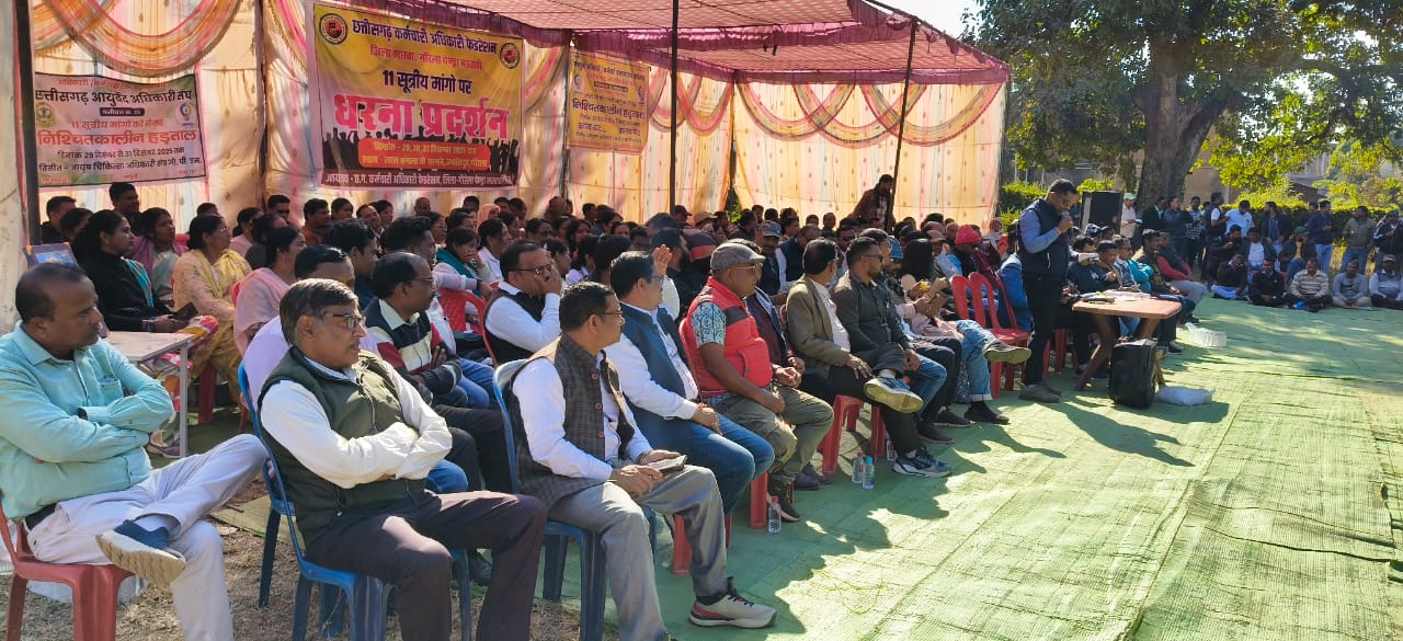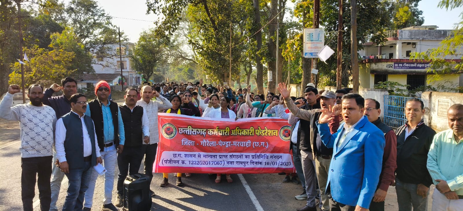 बता दें कि, भाजपा ने “मोदी की गारंटी” वायदा पूरा नहीं किया है, इसलिए राज्य के 125 कर्मचारी संगठनो के प्रतिनिधि संगठन कर्मचारी अधिकारी फेडरेशन के द्वारा 3 दिवसीय हड़ताल किया गया था। हड़ताल में मंच संचालन अजय चौधरी ने किया। तीसरे दिन धरना प्रदर्शन को सौरभ दुबे, मोनिका जैन, राकेश चौधरी, डॉ. बीपी सिंह, पारस प्रधान, संजय गुप्ता, संजय पैकरा, संजय सोनी, दिनेश राठौर, आशीष शर्मा, जनार्दन मंडल, अंबुज मिश्रा, प्रकाश रैदास, मुकेश निषाद, गीतेश्वर राठौर इत्यादि ने सम्बोधित किया। धरना प्रदर्शन और रैली में मुख्य रूप से कर्मचारी अधिकारी फेडरेशन जिला संयोजक डॉ. संजय शर्मा, महासचिव आकाश राय, सचिन तिवारी, प्रवीण श्रीवास, धीरज पांडे, अमरीक सिंह, कविता शर्मा, सरिता सिंह, अक्षय नामदेव, सत्य नारायण जायसवाल, राजकिशोर टंडन, पीयूष गुप्ता, प्रीतम कोशले, प्रकाश रैदास, अजय सप्रे, किशन राठौर, अमित शर्मा, अभिषेक शर्मा, लक्ष्मी शंकर गुप्ता, सूरज चौहान, प्यारेलाल पुरी, छोटूलाल रात्रे, अनुजय वैश्य, राजेश सोनी, उषा कोशले, बलराम तिवारी, संजय नामदेव, रामकुमार बघेल, प्रकाश बंजारे, लाल बहादुर कौशिक, जेपी पैकरा, जनभान सिंह पैकरा, बीएल पांडे, प्रशांत शर्मा, शरद ताम्रकार, राकेश तिवारी, तुलसी महिलांगे, राजेश चौधरी, कैलाश लदेर, ओम प्रकाश सोनवानी, रामप्रमोद तिवारी, प्रवीण कौशिक, कन्हैया सोनवानी, अमिताभ चटर्जी, आरके तिवारी, मुकेश सिंह ठाकुर, परसराम चौधरी, संतोष कश्यप, रणजीत सिंह राठौर, अरुण कछवाहा, प्रकाश जायसवाल, सतीश श्रीवास, सुदर्शन भैना, रूपेश गुप्ता सहित विभिन्न संगठनों के जिला अध्यक्ष, पदाधिकारी सहित सैकड़ों की संख्या में कर्मचारी शामिल थे।