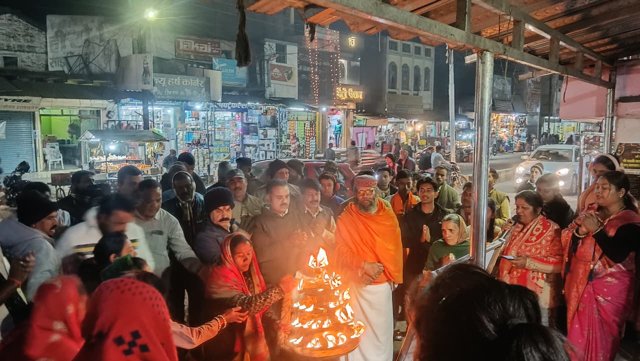 अयोध्या श्रीराम प्राणप्रतिष्ठा द्वितीय वर्षगाँठ पर दुर्गा चौक, पेंड्रा में भव्य महाआरती सम्पन्न