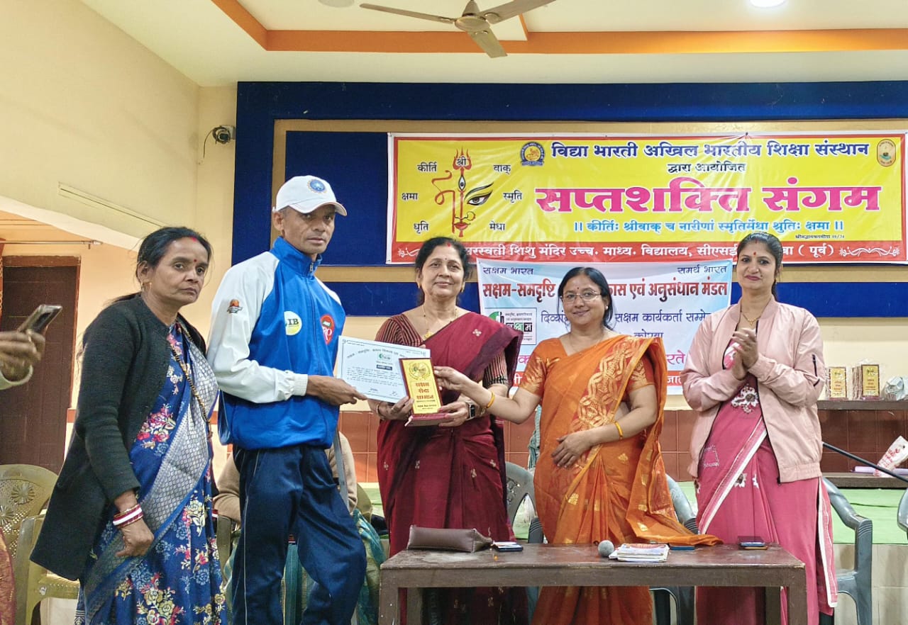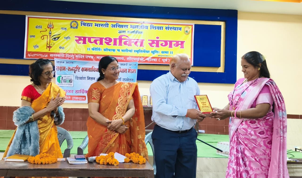 कोरबा (05.01.2026) कल दिनांक 04 जनवरी 26 को बुधवारी स्थित, CSEB सरस्वती शिशु मंदिर कोरबा में सक्षम – समदृष्टि छमता विकास एवं अनुसन्धान मंडल जिला इकाई कोरबा का जिला अधिवेशन आयोजित किया गया। जिसमे जिला भर के समाज सेवी और दिव्यांगजन् सम्मिलित हुए। कार्यक्रम कि शुरुआत अधिवेशन कि मुख्य अतिथि प्रांत सह सचिव एवं कोरबा जिला प्रभारी अंजली चावड़ा, जिला संरक्षक डॉ वीणा अग्रवाल, जिला अध्यक्ष ज्योति श्रीवास, पाली ब्लॉक संयोजक निर्मला शर्मा मैम द्वारा सूरदास जी एवं अष्टावक्र जी के चित्र पर पूजा अर्चना से किया गया। जिसके पश्चात सक्षम संगठन मंत्र का समूहिक गायन् किया गया। अधिवेशन के पहले सत्र में अंजली चावड़ा जी द्वारा सक्षम के उद्देश्य सिद्धांत, कार्य पद्धति, दिव्यांगता के सभी 21 प्रकारों कि जानकारी, सक्षम के आयाम एवं प्रकल्पो के बारे में विस्तार से बताया गया। जिसमे पश्चात डॉ के के सोनी सर द्वारा रक्तवीकार के सम्बन्धित जानकारी और उससे होने वाले दिव्यांगता के प्रमुख समस्याओ सिकलसेल, हिमाफीलिया, थैलीसेमिया के बारे में विस्तार से जानकारी दी गयी। जिसमे रक्तदान के बारे में भी जागरूक करते हुए रक्तदान के लिए आह्वान किया गया। कार्यक्रम में अतिथि के रूप में सम्मिलित राज्यपाल पुरस्कृत शिक्षक मुकुंद उपाध्याय सर द्वारा अपने कार्य, एक शिक्षक से राज्यपाल पुरस्कृत शिक्षक तक क सफर के बारे में जानकारी दिया गया। उन्होंने कहा कि दिव्यांगता शरीर से कम मन से मानने से ज्यादा नुकसान करती है। दिव्यांग भाइयो को कभी भी कम से खुद को कमजोर नही होने देना है। आपका कार्य आपका संघर्ष आपका समाह में पहचान बनाता है। द्वितीय सत्र का आरम्भ भोजन उपरांत किया गया इसमे स्पर्श क्लिनिक जिला चिकित्सालय प्रभारी संजय तिवारी द्वारा मनोरोग जे बारे में बहुत ही बेसिक जानकारी प्रदान् कि गयी साथ ही बताया गया कि एक मनोरोगी और मंदबुद्धि व्यक्ति को समाज में किन किन समस्याओ का सामना करना पड़ता है। उनके परिजनों और घर वालो को किन किन परिस्थितियों का सामना करना पड़ता है। जिसके पश्चात सक्षम जिला संरक्षक डॉ वीणा अग्रवाल जी द्वारा नेत्र सम्बंधित समस्याओ कि जानकारी प्रदान किया गया। उन्होंने पूर्ण दृष्टि, आंशिक दृस्टि विकलांगता के बारे में बताते हुए उसके कारण उपाय और सावधानी के बारे में अभी को अवगत करवा। कार्यक्रम में आये हुए विशेष दिव्यांग बच्चों के शिक्षिकाओं श्रीमती मीनाक्षी रत्नपाखी, सुधा शर्मा, ममता नायडू, अरुणा शर्मा जी द्वारा अपने अनुभव के साथ दिब्यांग विद्यालय में प्रवेश प्रक्रिया, वहा के शिक्षा पद्धति आदि के बारे में जानकारी प्रदान किया गया। कार्यक्रम में शामिल हुए राष्ट्रीय दिव्यांग रगबी टीम के खिलाडी ओम्कारेश्वर सोनवानी, 