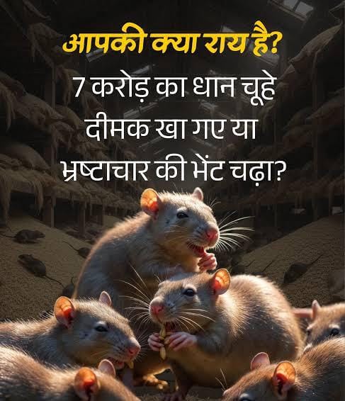 कृषि विभाग ने जांच के आदेश जारी किए हैं, लेकिन स्थानीय लोग शक जताते हैं। चूहे-दीमक घोटाले ने न केवल किसानों का भरोसा तोड़ा है, बल्कि छत्तीसगढ़ के धान बेल्ट की साख पर भी सवाल खड़े कर दिए हैं। क्या गृह मंत्री अपने जिले के चूहों पर अंकुश लगाएंगे या यह घोटाला दब जाएगा? कवर्धा के किसान जवाब मांग रहे हैं।