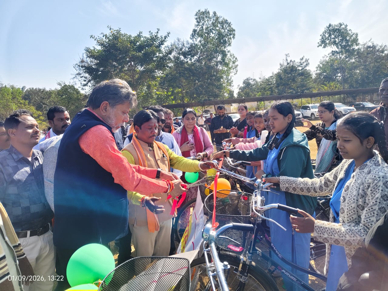 भाजपा प्रदेश अध्यक्ष एवं विधायक किरण देव और सांसद महेश कश्यप ने छात्राओं को किया साइकिल वितरण