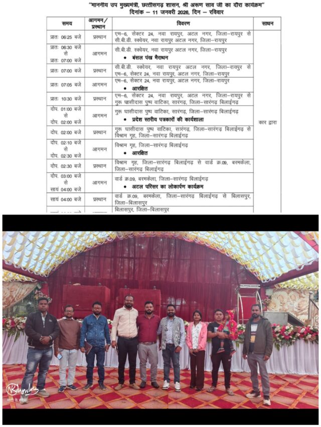 कुल मिलाकर उप मुख्यमंत्री का यह दौरा प्रशासनिक, विकासात्मक और पत्रकारिता के दृष्टिकोण से अत्यंत महत्वपूर्ण माना जा रहा है। जिले में इस कार्यक्रम को लेकर उत्सव जैसा माहौल है और सभी की निगाहें तय कार्यक्रम पर टिकी हुई हैं।