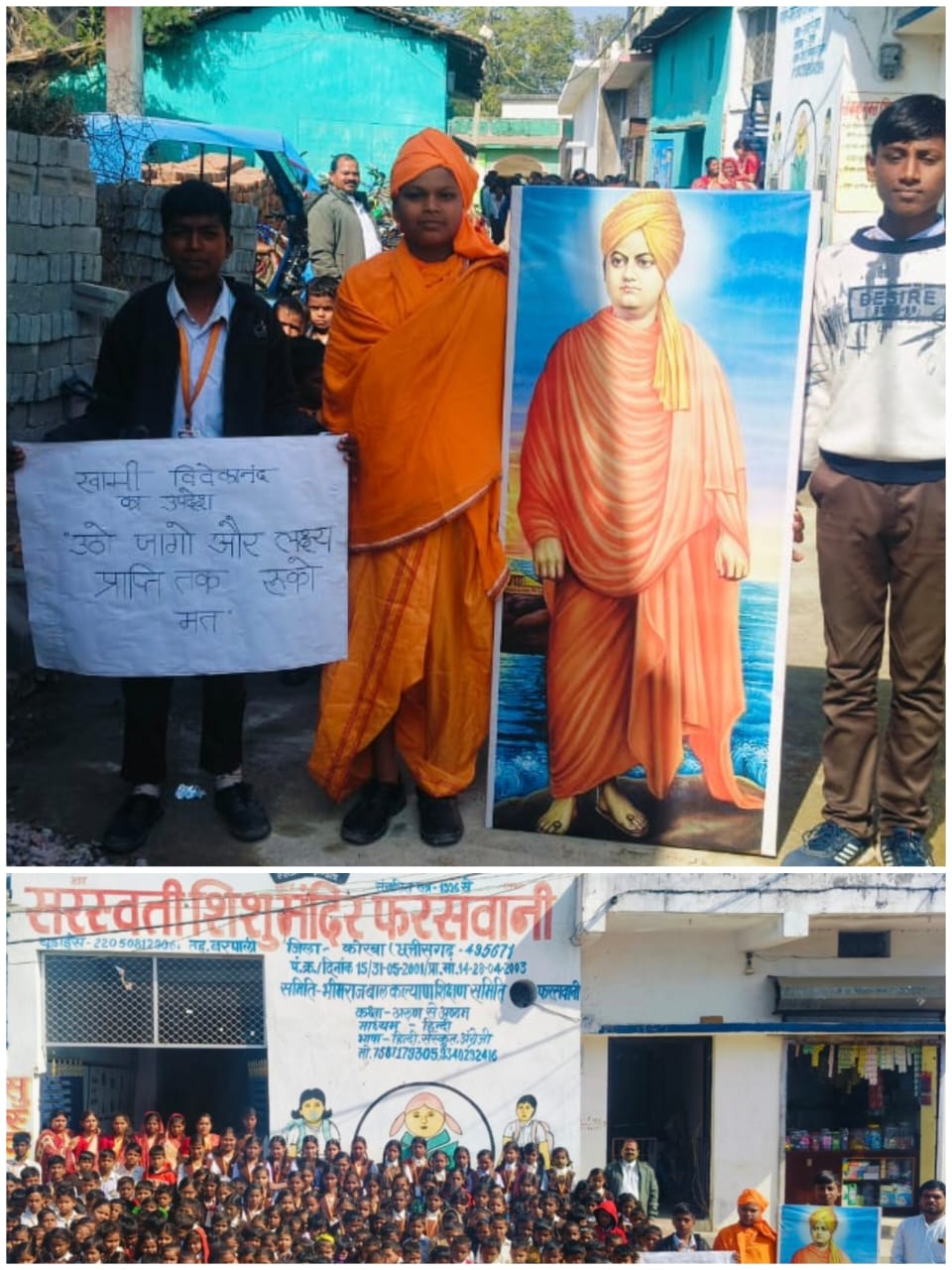 कार्यक्रम की शुरुआत भैया-बहनों द्वारा स्वामी विवेकानंद की वेशभूषा में निकाली गई रैली से हुई। रैली में बच्चे हाथों में स्वामी जी के तेलचित्र, झंडे और प्रेरणादायी संदेश लेकर पूरे ग्राम में भ्रमण करते नजर आए। “उठो, जागो और तब तक मत रुको जब तक लक्ष्य प्राप्त न हो जाए” जैसे नारों से वातावरण गुंजायमान हो उठा।