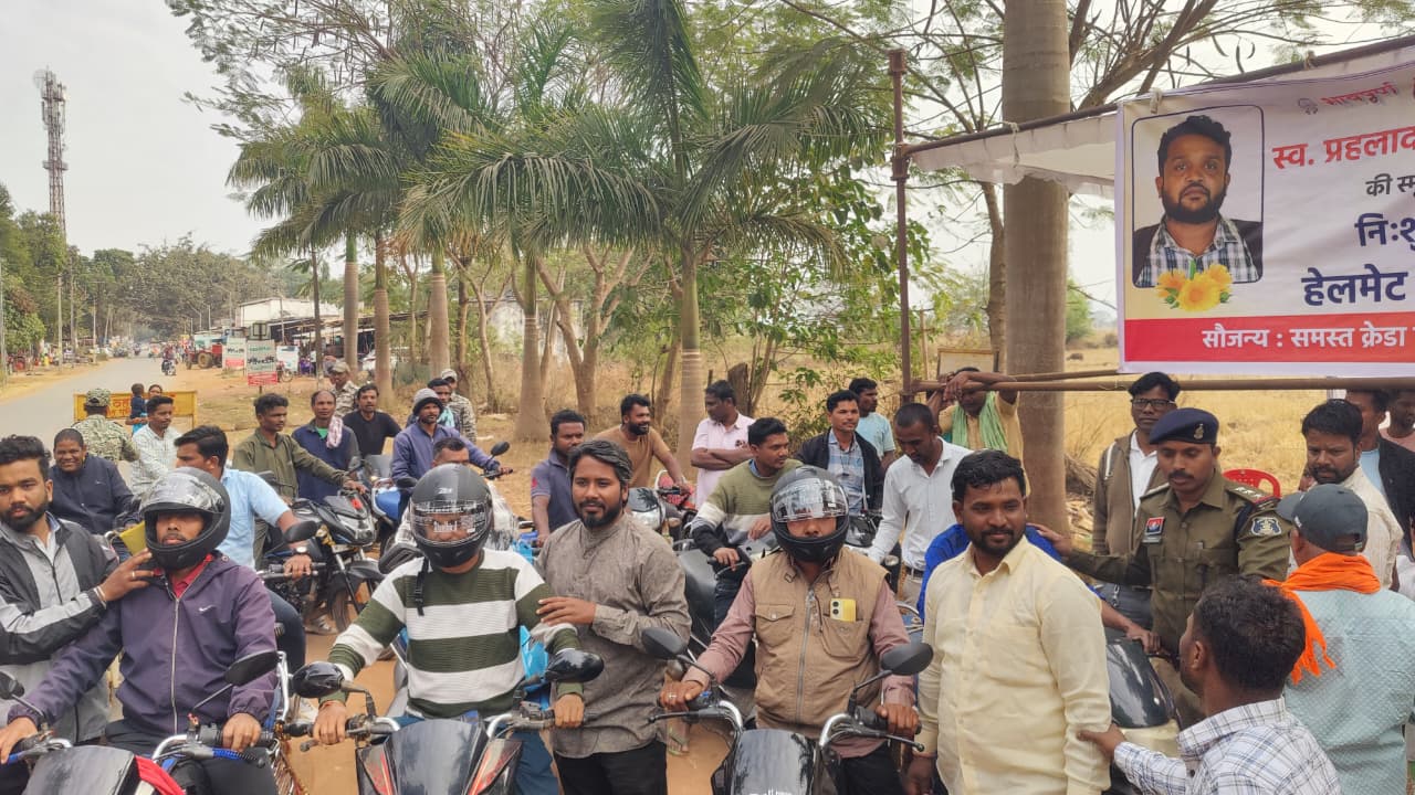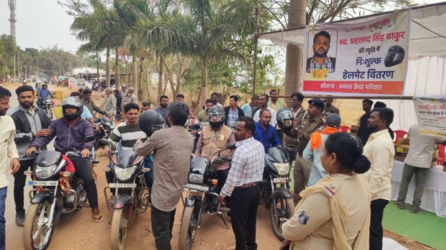 स्वर्गीय प्रहलाद सिंह ठाकुर की स्मृति में सहकर्मियों ने किया निःशुल्क हेलमेट वितरण