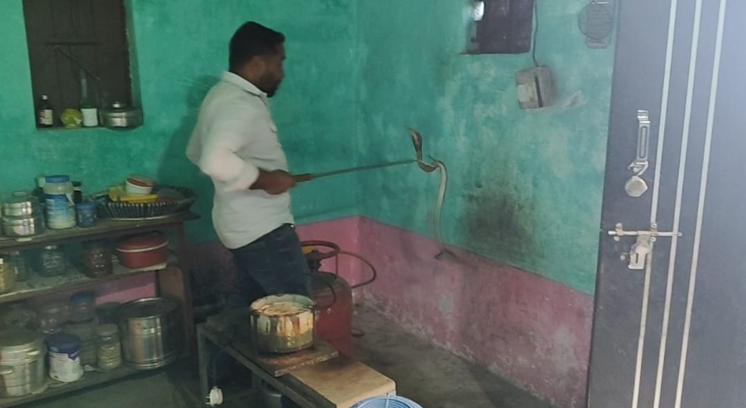 कोरबा जिले के आई.टी.आई रामपुर के डिंगापुर क्षेत्र के मंगलवार दोपहर एक घर के किचन में उस समय अफरा-तफरी मच गई जब सिलेंडर के पीछे एक फन फैलाए हुए नाग को बैठा देखा गया,आवाज सुनते ही घर की महिला (अर्चना कंवर)घबरा गई और कुछ देर के लिए हक्के-बक्के रह गई, फन वाला सांप देखकर यह समझते देर नहीं लगी कि यह बेहद जहरीला नाग है, महिला ने तुरंत पड़ोसियों को बुलाया, लेकिन किसी में भी इतने खतरनाक सांप को निकालने की हिम्मत नहीं हुई, इसके बाद वाइल्डलाइफ रेस्क्यू टीम (नोवा नेचर) के जितेंद्र सारथी को सूचना दी गई, सूचना मिलते ही जितेंद्र सारथी अपने टीम के साथ मौके पर पहुंचे और पूरी सावधानी व कुशलता के साथ नाग का सुरक्षित रेस्क्यू किया,उन्होंने सांप को विशेष उपकरणों की मदद से पकड़कर थैले में सुरक्षित रखा, जिससे घर के सभी सदस्यों ने राहत की सांस ली, रेस्क्यू के बाद नाग को उसके प्राकृतिक आवास में सुरक्षित छोड़ दिया गया।