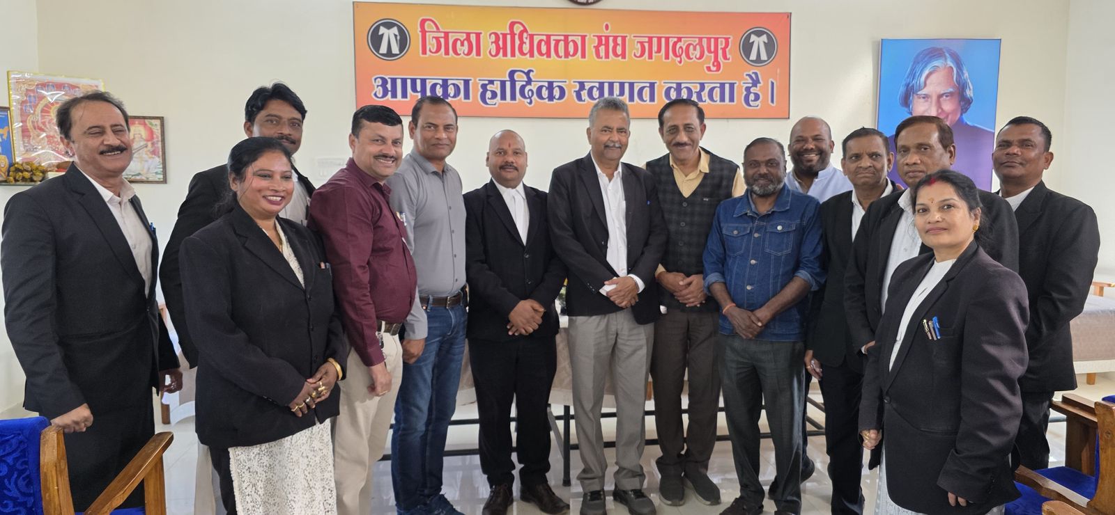 जगदलपुर। जिला अधिवक्ता संघ के नवनिर्वाचित अध्यक्ष विक्रमादित्य झा, वरिष्ठ उपाध्यक्ष अवधेश झा, उपाध्यक्ष (महिला) प्रीति वानखेड़े, सचिव संतोष चौधरी, सह सचिव भरत सिंह सेठिया, कोषाध्यक्ष दीनबंधु रथ, सांस्कृतिक एवं क्रीड़ा सचिव हेलिना मोजेस तथा ग्रंथपाल ओमप्रकाश यादव से न्यालय परिसर में बस्तर जिला पत्रकार संघ के पदाधिकारियों ने सौजन्य भेंटकर शुभकामनाएं दीं।इस अवसर पर पत्रकार संघ के अध्यक्ष मनीष गुप्ता सहित अन्य पदाधिकारी उपस्थित रहे। बैठक के दौरान बस्तर की मूल समस्याओं, जनहित के मुद्दों एवं आपसी समन्वय के साथ कार्य करने पर सकारात्मक चर्चा हुई। दोनों ही संघों के पदाधिकारियों ने क्षेत्र के सर्वांगीण विकास के लिए परस्पर सहयोग से आगे बढ़ने की सहमति जताई।