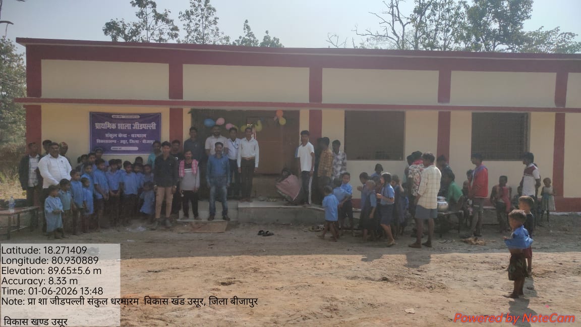प्राथमिक शाला जीड़पल्ली, संकुल केंद्र धरमारम के नवीन शाला भवन के उद्घाटन अवसर पर संकुल प्राचार्य पामेड, संकुल समन्वयक धरमारम, शिक्षक, विद्यार्थी, ग्राम के पुजारी, पेरमा, गायता तथा बड़ी संख्या में ग्रामीण उपस्थित रहे।