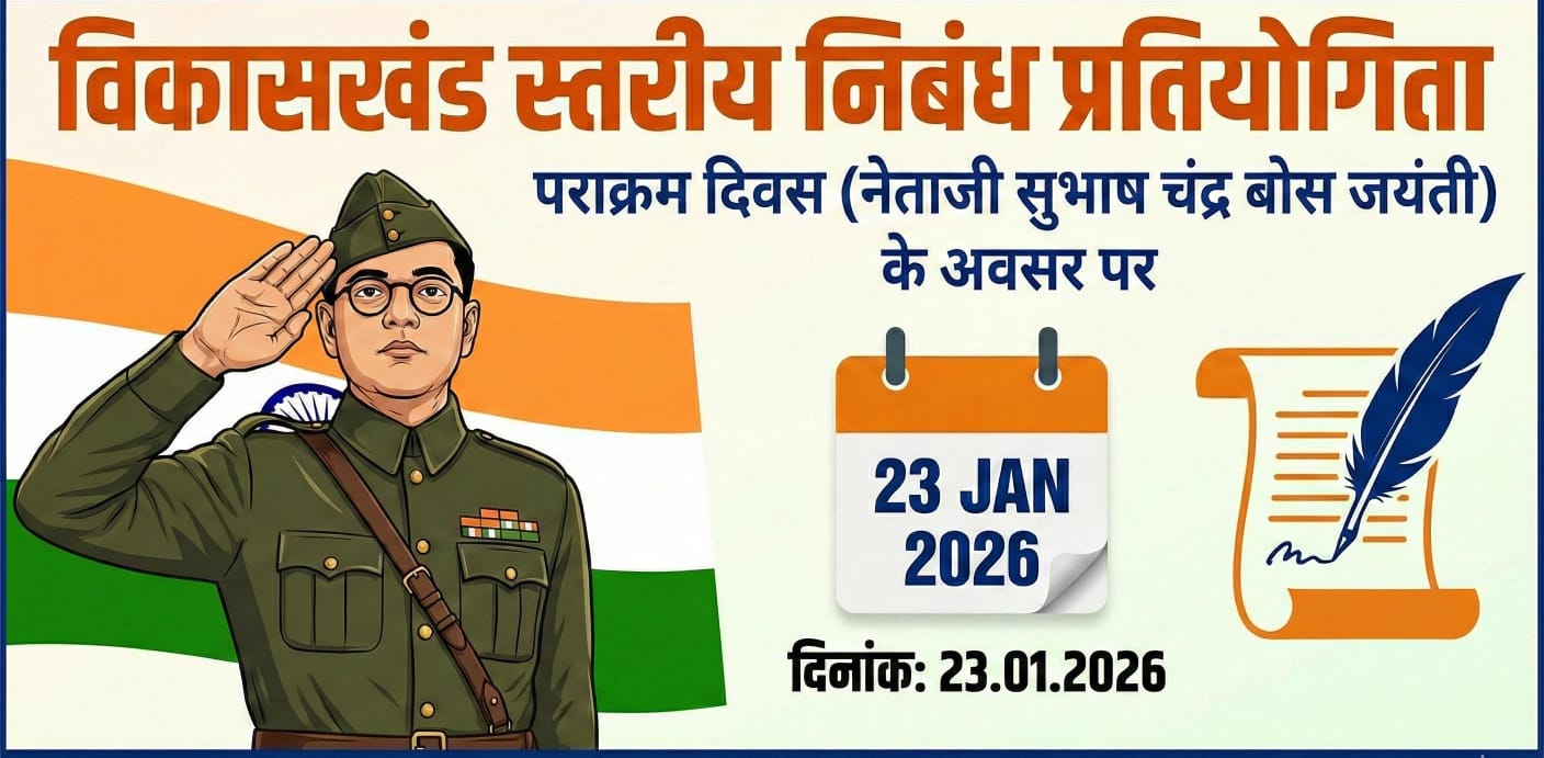 कुसमी। अनुभाग प्रशासन कुसमी के तत्वाधान में गणतंत्र दिवस के अवसर को यादगार और शैक्षणिक दृष्टि से सार्थक बनाने के उद्देश्य से दिनांक 23 जनवरी 2026, शुक्रवार को निबंध लेखन प्रतियोगिता का आयोजन किया जा रहा है। यह प्रतियोगिता सेजेश विद्यालय, सेमरा में दोपहर 2 बजे से शाम 4 बजे तक आयोजित होगी।