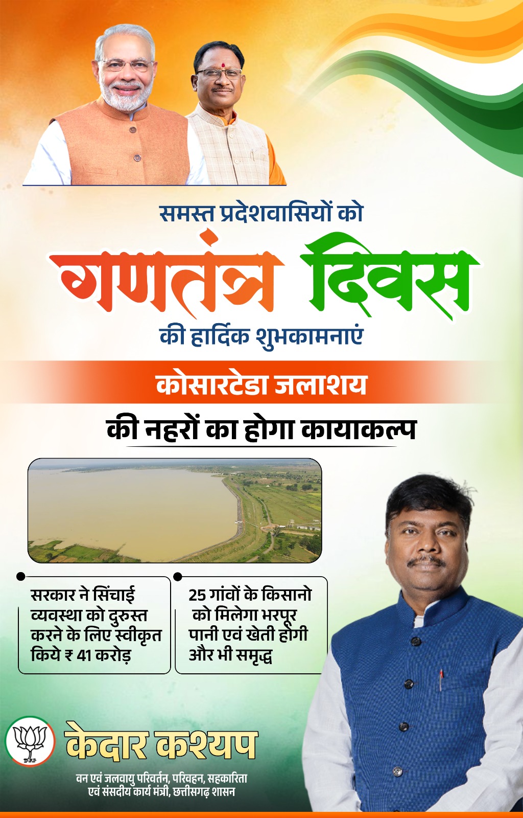 गणतंत्र दिवस की हार्दिक शुभकामनाएँ। – केदार कश्यप (वन एवं जलवायु परिवर्तन मंत्री छत्तीसगढ़ शासन)