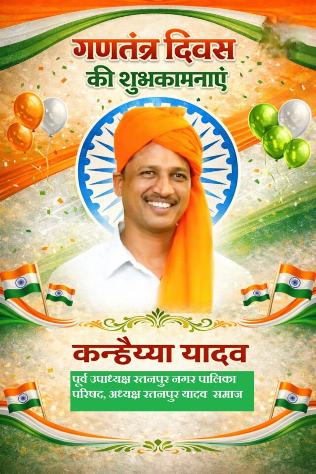 Home चर्चा में रतनपुर यादव समाज अध्यक्ष – कन्हैया यादव ने दी रतनपुर वासियों को...चर्चा मेंरतनपुर यादव समाज अध्यक्ष – कन्हैया यादव ने दी रतनपुर वासियों को गणतंत्र दिवस की शुभकामनाएंBy News36garh Reporter - 26 January 202680FacebookTwitterPinterestWhatsApp रतनपुर यादव समाज अध्यक्ष – कन्हैया यादव ने दी रतनपुर वासियों को गणतंत्र दिवस की शुभकामनाएं संविधान हमारा स्वाभिमान, तिरंगा हमारी पहचान। गणतंत्र दिवस की शुभकामनाएँ। सौजन्य – विमल सोनी (रतनपुर संवाददता)